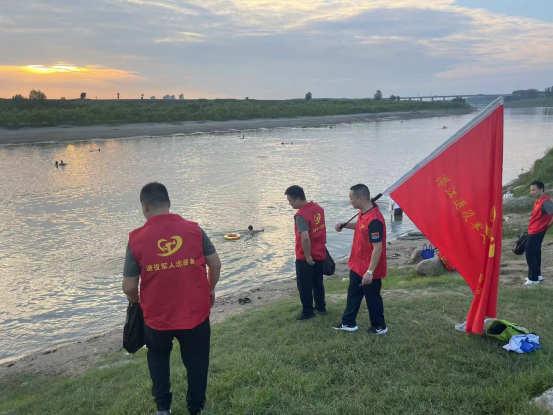 最后,组织部分退役军人党员前往东荆河开展环境卫生清理和夏季防溺水义务巡查。退役军人志愿者们用实际行动参与到“水乡园林精致之城”共建共享活动中,弘扬和传承兵心不改、初心不忘的军人本色。