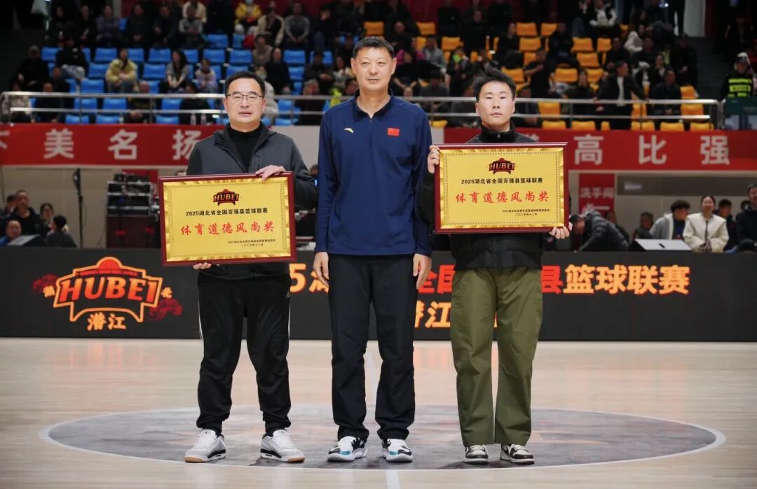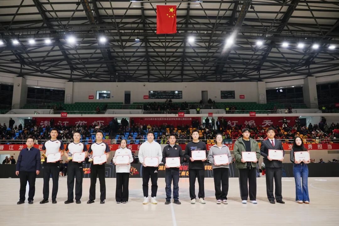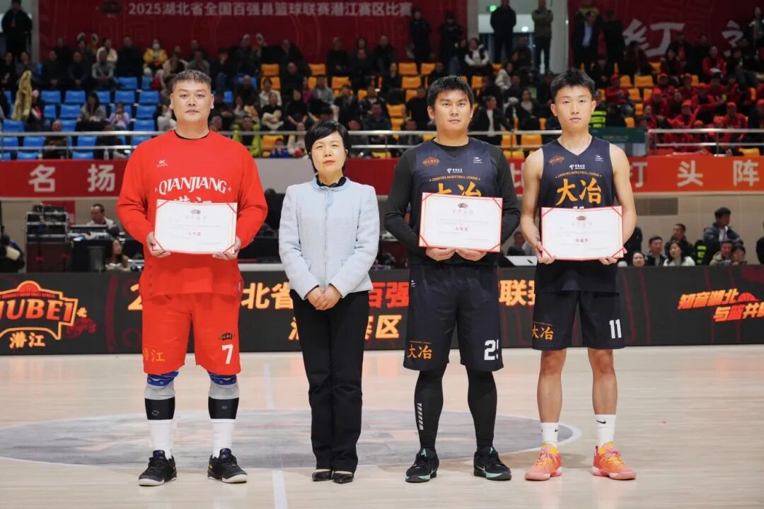 赛后举行了颁奖典礼,潜江队获得2025湖北省全国百强县篮球联赛第一名,大冶队、潜江队同获道德风尚奖,余坤、马兴当选赛区人气王,冯铨斩获助攻王,丁文获裁判金哨奖,雷雨、谈欣获银哨奖,刘娜等多人分获优秀记录台人员、技术统计员场务人员及优秀MC/DJ称号,新华网湖北频道拿下优秀赛事推广奖。
