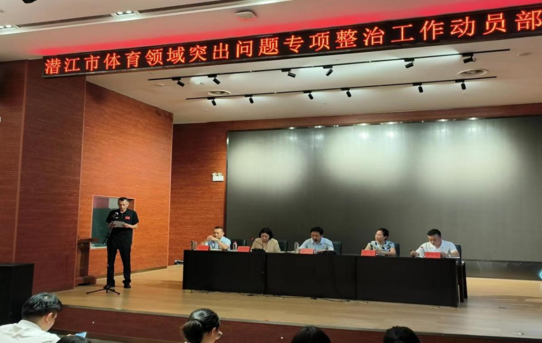 会上,伍晓梅同志宣读了《潜江市体育领域突出问题专项整治工作方案》,市少年儿童体育学校、市篮球协会、市足球协会做了表态发言,表示将高度重视本次专项整治工作,在整治中补短板、强弱项、堵漏洞,推动个性问题和共性问题、显性问题与深层次问题一起解决,将问题整改与推动发展一体谋划推进,把整改整治与建章立制结合起来,将整治工作落到实处,使专项整治工作成为推进事业高质量发展的有效抓手。