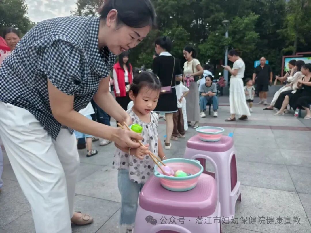 “稳操胜券”筷子夹乒乓球:用筷子夹起写有“菠菜”“核桃”“牛肉”等食物名称的乒乓球,稳稳放入“健康餐盘”,既考验了手部稳定,也巩固了食物分类知识。大家纷纷表示:“这种活动形式太棒了!一点也不枯燥,玩着游戏就把知识记住了!”