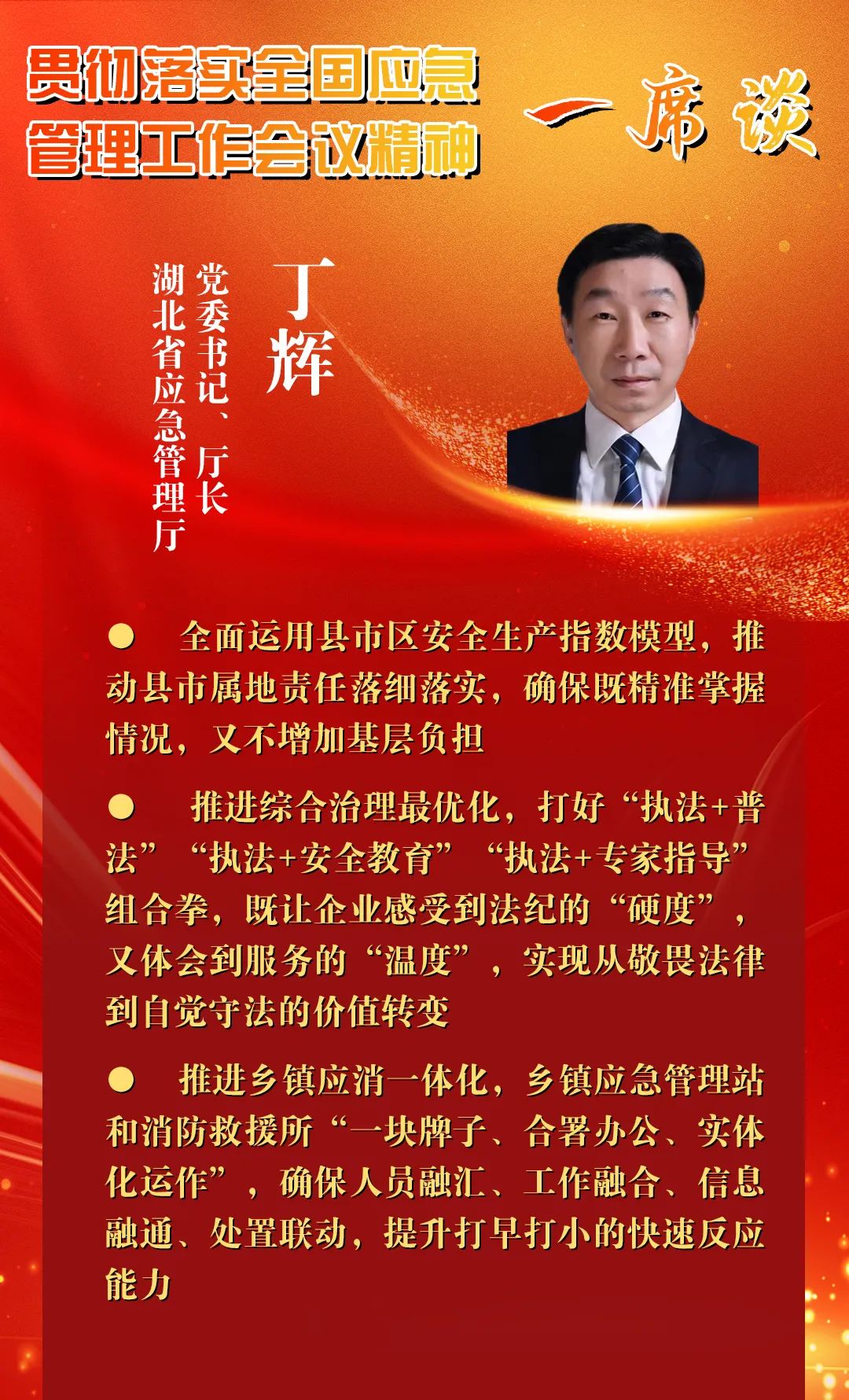 2025年是“十四五”规划收官之年、“十五五”规划谋划之年,以高水平安全护航高质量发展意义重大、责任重大。2025年全国应急管理工作会议为应急管理系统在新起点上竞进有为标定了方位、明确了路径。湖北省应急管理厅将重点推进安全生产治本攻坚深化年、基层能力建设加速提升年、亮剑护安综合执法年建设,具体来说,将实施安全生产治本攻坚三年行动、自然灾害防救同链、应急救援提档升级、执法亮剑护安促稳、一线夯基筑垒提能、全民安全素养提升等“六大行动”,构筑更加牢固的高水平安全体系,确保安全生产保持“一无两降”,事故起数和死亡人数同比2024年继续保持两位数高幅下降,自然灾害防治有力有效,应急管理体系和能力现代化持续推进,全力为中国式现代化湖北实践贡献应急管理力量。