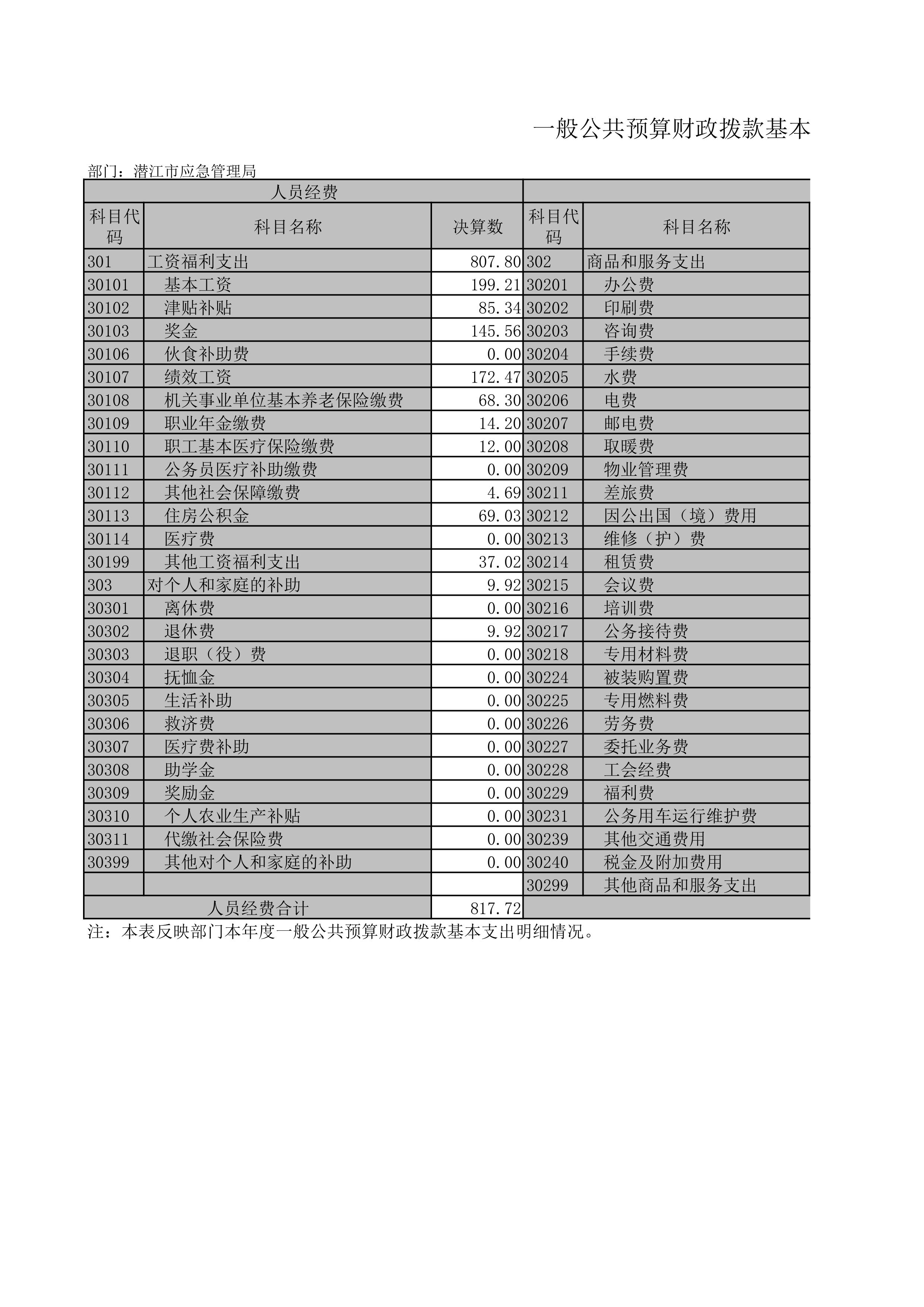 人员经费817.72万元,主要包括:基本工资、津贴补贴、奖金、伙食补助费、绩效工资、机关事业单位基本养老保险缴费、职业年金缴费、职工基本医疗保险缴费、公务员医疗补助缴费、其他社会保障缴费、住房公积金、医疗费、其他工资福利支出、离休费、退休费、退职(役)费、抚恤金、生活补助、救济费、医疗费补助、助学金、奖励金、个人农业生产补贴、代缴社会保险费、其他对个人和家庭的补助。