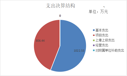 2022年度支出合计1828.96万元,与2021年度相比,支出合计减少384.48万元,下降17%。其中:基本支出1022.53万元,占本年支出56%;项目支出806.44万元,占本年支出44%;上缴上级支出0万元,占本年支出0%;经营支出0万元,占本年支出0%;对附属单位补助支出0万元,占本年支出0%。
