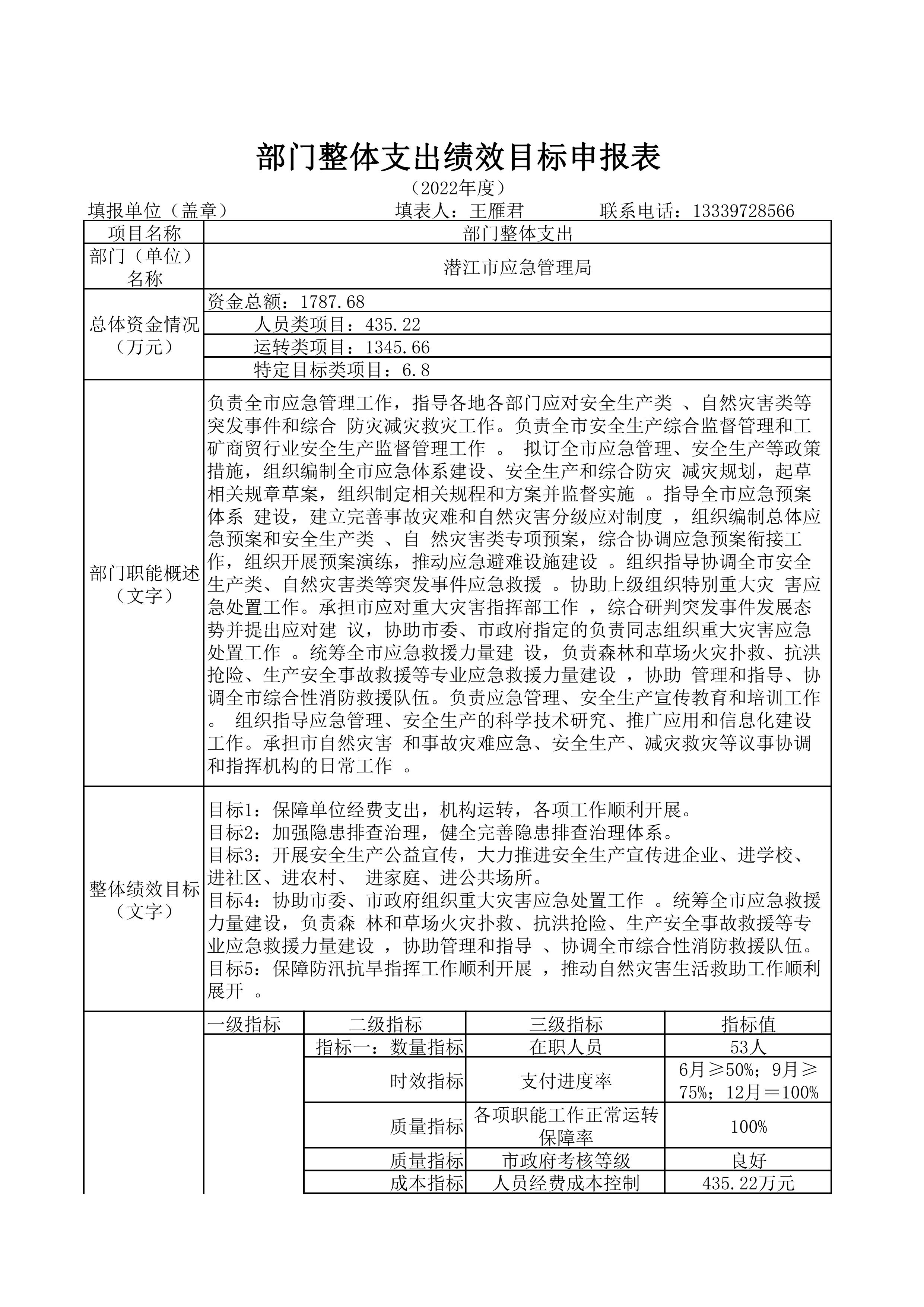 一、2022年度潜江市应急管理局整体绩效评价报告
