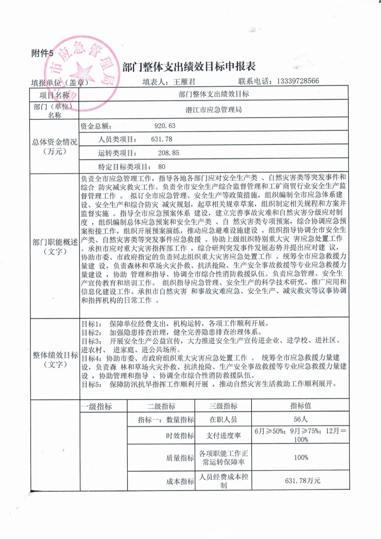 一、2023年度潜江市应急管理局整体绩效评价自评报告