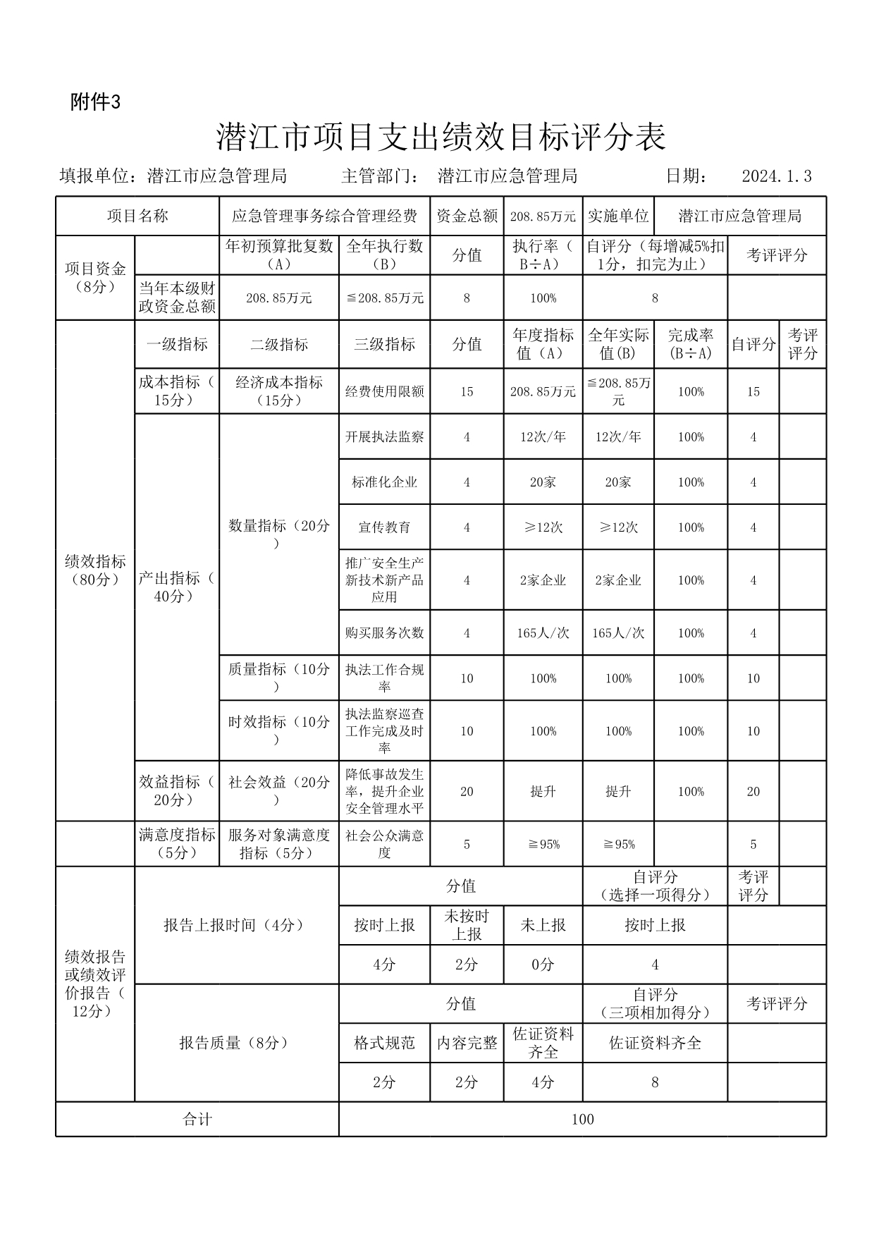 附件:2023年度应急管理事务综合管理经费项目自评表(附后,格式参见附3)