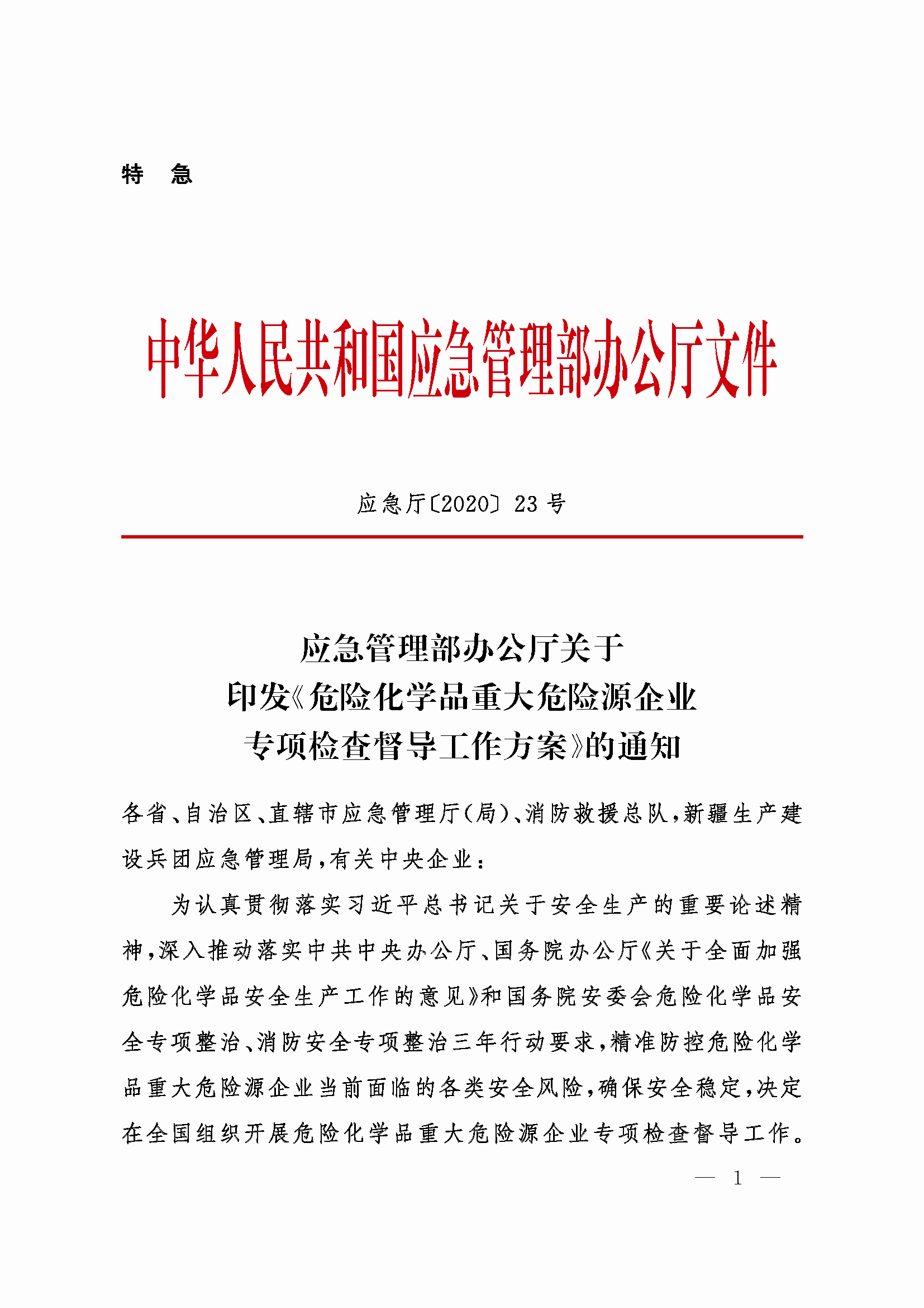 为精准防控危险化学品重大危险源企业当前面临的各类安全风险,根据应急管理部、省应急管理厅统一部署,市安委会办公室研究决定,组织开展全市危险化学品重大危险源和烟花爆竹企业专项检查督导(简称专项检查督导)工作。现将有关事项通知如下: