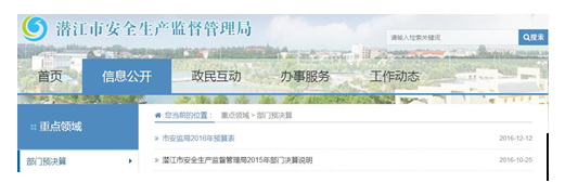 市安监局加大“三公”经费公开力度,截止2016年底,共公开“三公”经费信息3条。具体内容包括《三公经费支出明细》、《市安监局2016年部门预算及编制说明》、《市安监局2016年预算表》。