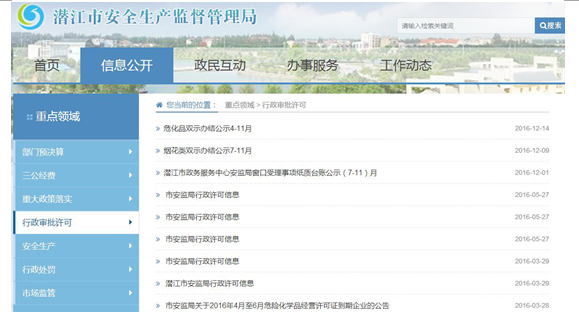 2016年我局的政务信息公开工作主要通过市安监局网站公布。