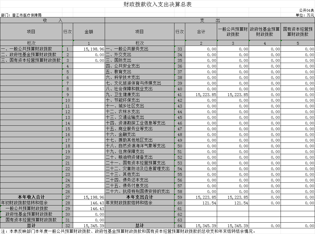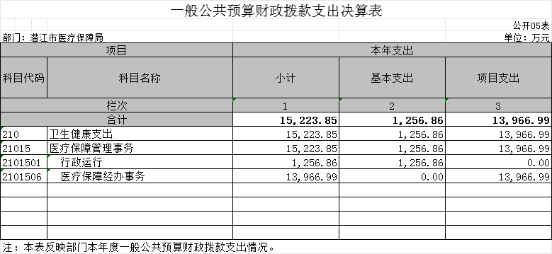 第二部分 潜江市医疗保障局2023年度部门决算表