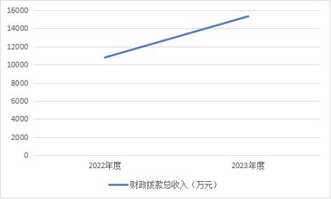 2023年度收入合计15248.40万元,与2022年度相比,收入合计增加4463.67万元,增长41.39%。其中:财政拨款收入15198.96万元,占本年收入99.68%;上级补助收入0万元,占本年收入0%;事业收入0万元,占本年收入0%;经营收入0万元,占本年收入0%;附属单位上缴收入0万元,占本年收入0%;其他收入49.44万元,占本年收入0.32%。
