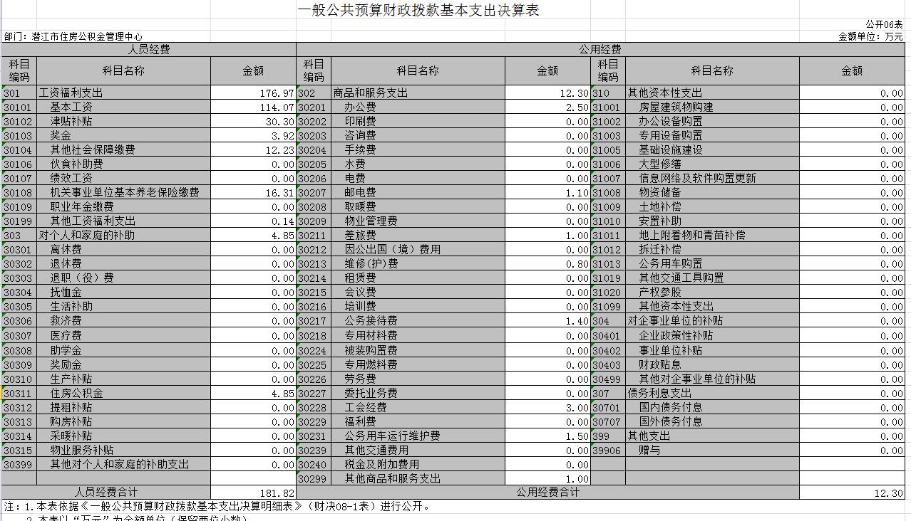 (六)一般公共预算财政拨款基本支出决算表(公开06表)