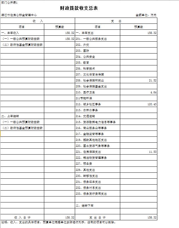 2019年财政拨款收支总预算158.32万元。收入包括:一般公共预算财政拨款158.32万元。支出包括:社会保障和就业支出21.52万元,医疗卫生4.84万元,城乡社区事务120.43万元,住房保障支出11.53万元。