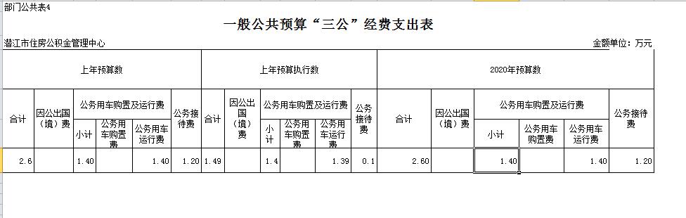 本部门2020年“三公”经费预算总数为5.6万元(财政拨款“三公”经费预算数为2.6万元,一是因公出国(境)经费0万元,公务接待费1.2万元,公务用车购置及运行费1.4万元) 。其中:因公出国(境)经费0万元,公务接待费2.6万元,公务用车购置及运行费3万元。2020年“三公”经费预算和上年“三公”经费预算持平,比上年执行数增加了0.46万元。