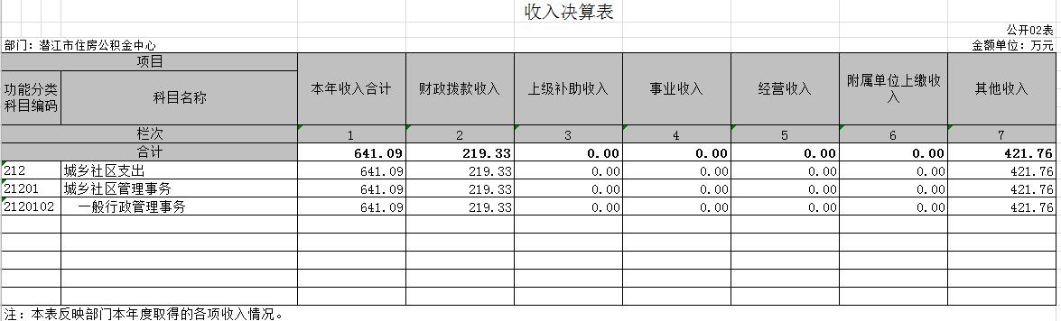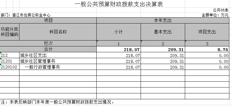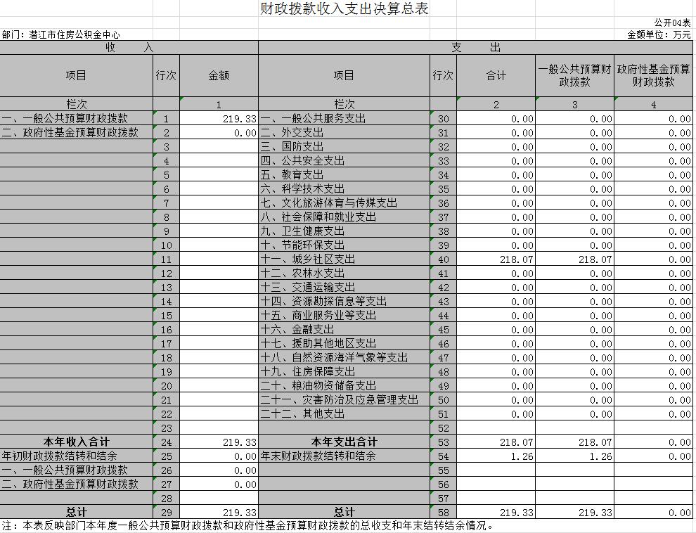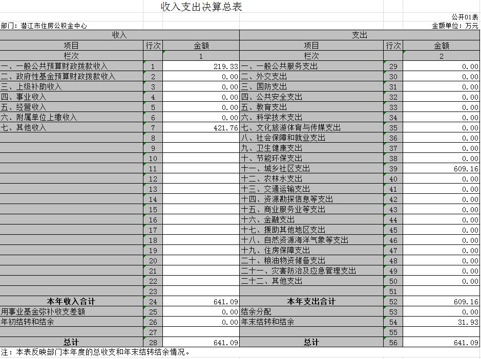 十一、潜江市住房公积金管理中心2019年度部门决算表