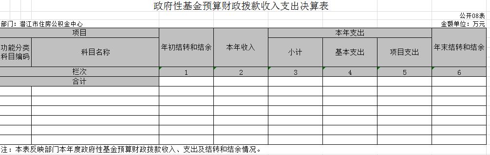 (八)政府性基金预算财政拨款收入支出决算表(公开08表)