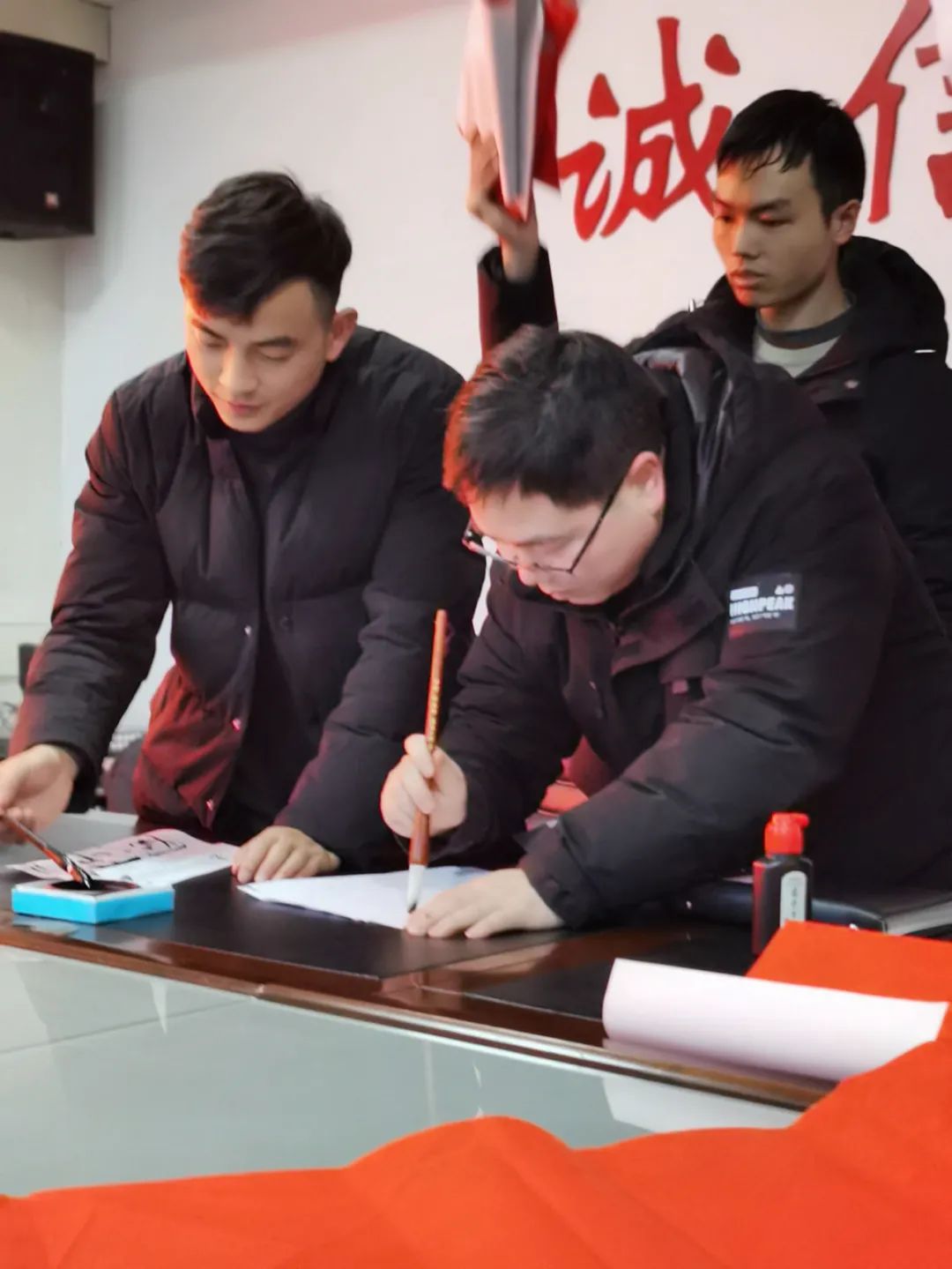 活动中,我中心还现场连线在外企业家,送上祝福。本次活动所创作的春联将挑选出优秀作品,送给企业家谨表祝愿。