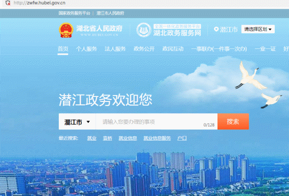 (一)注册或登录湖北政务服务网(http://zwfw.hubei.gov.cn/),选择区划潜江市: