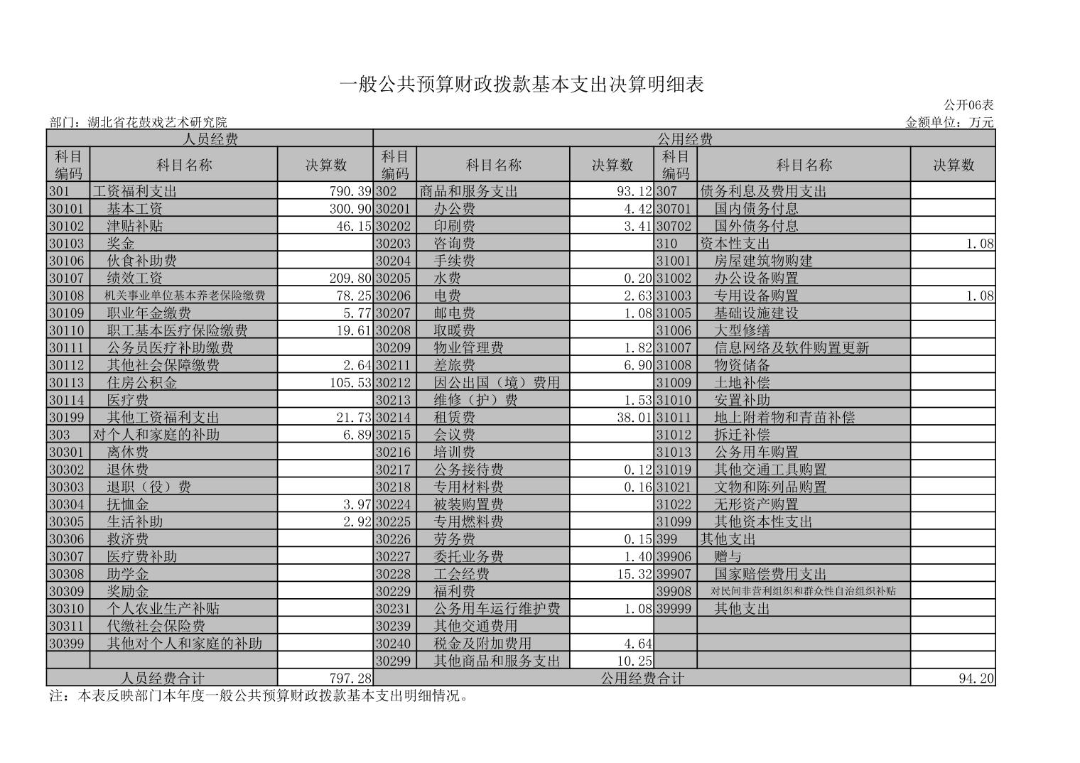 名 称: 湖北省花鼓戏艺术研究院 2021年部门决算