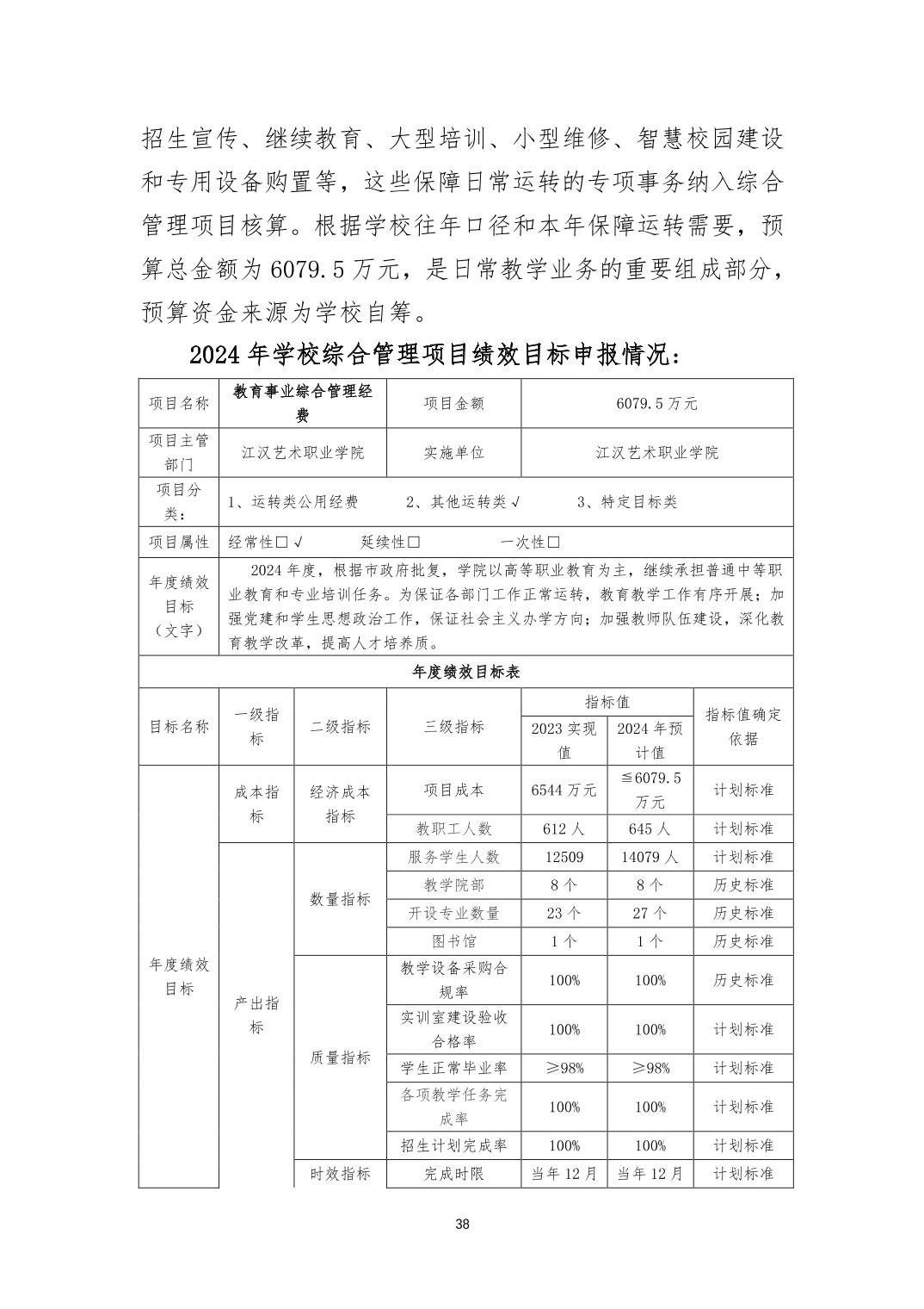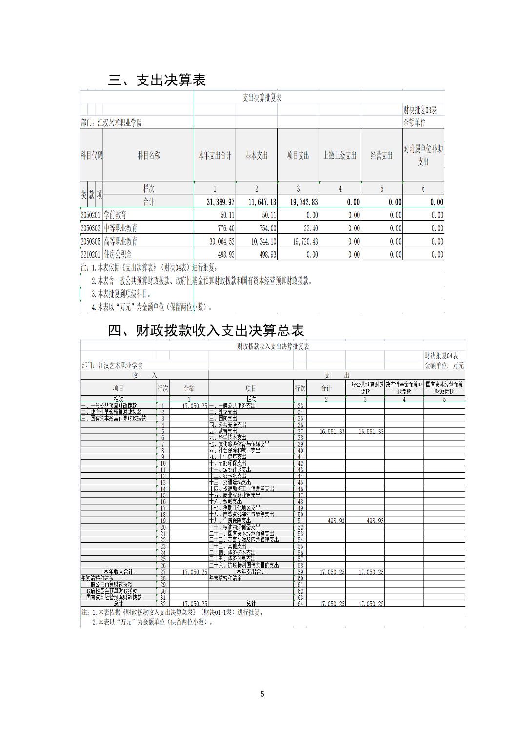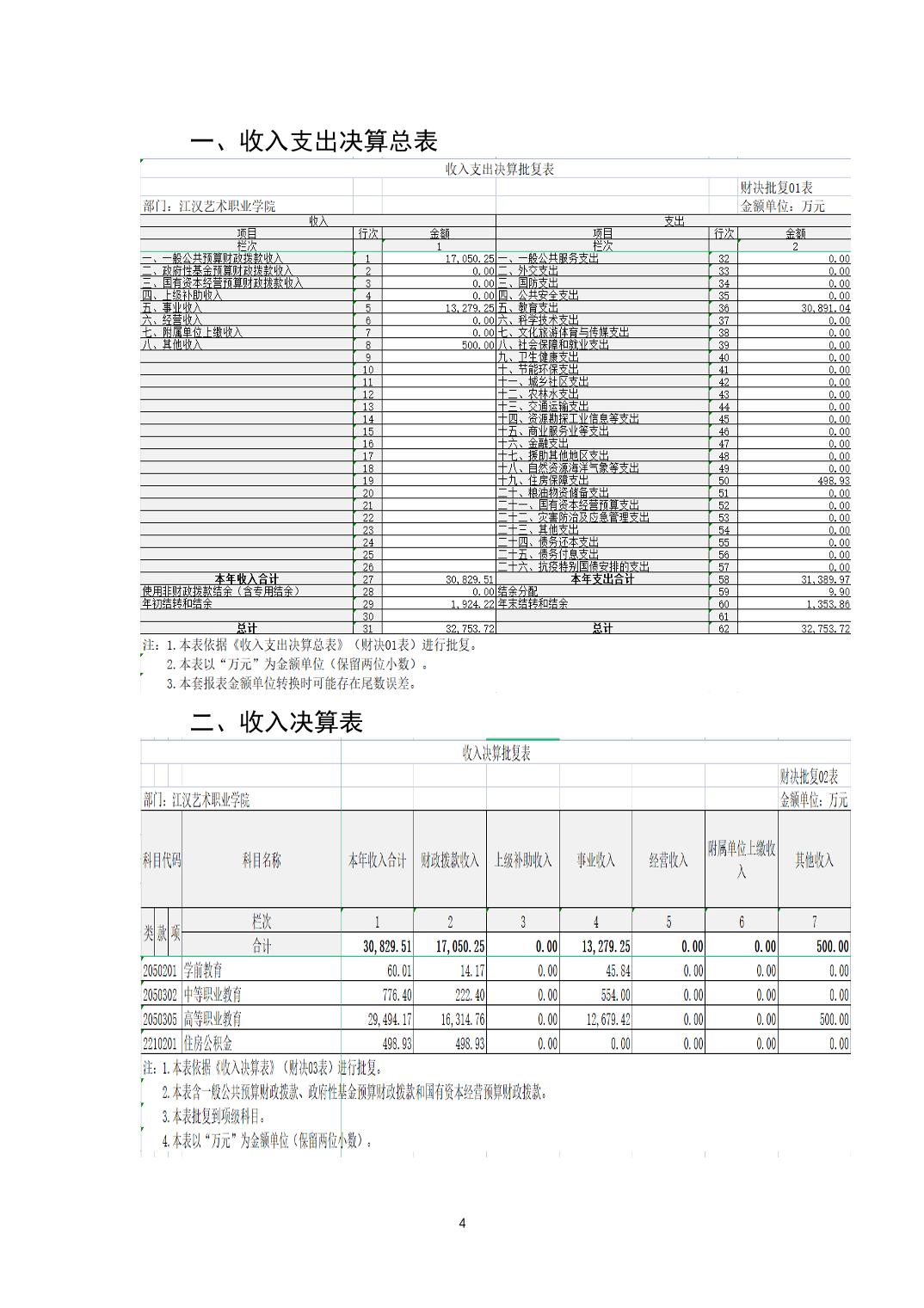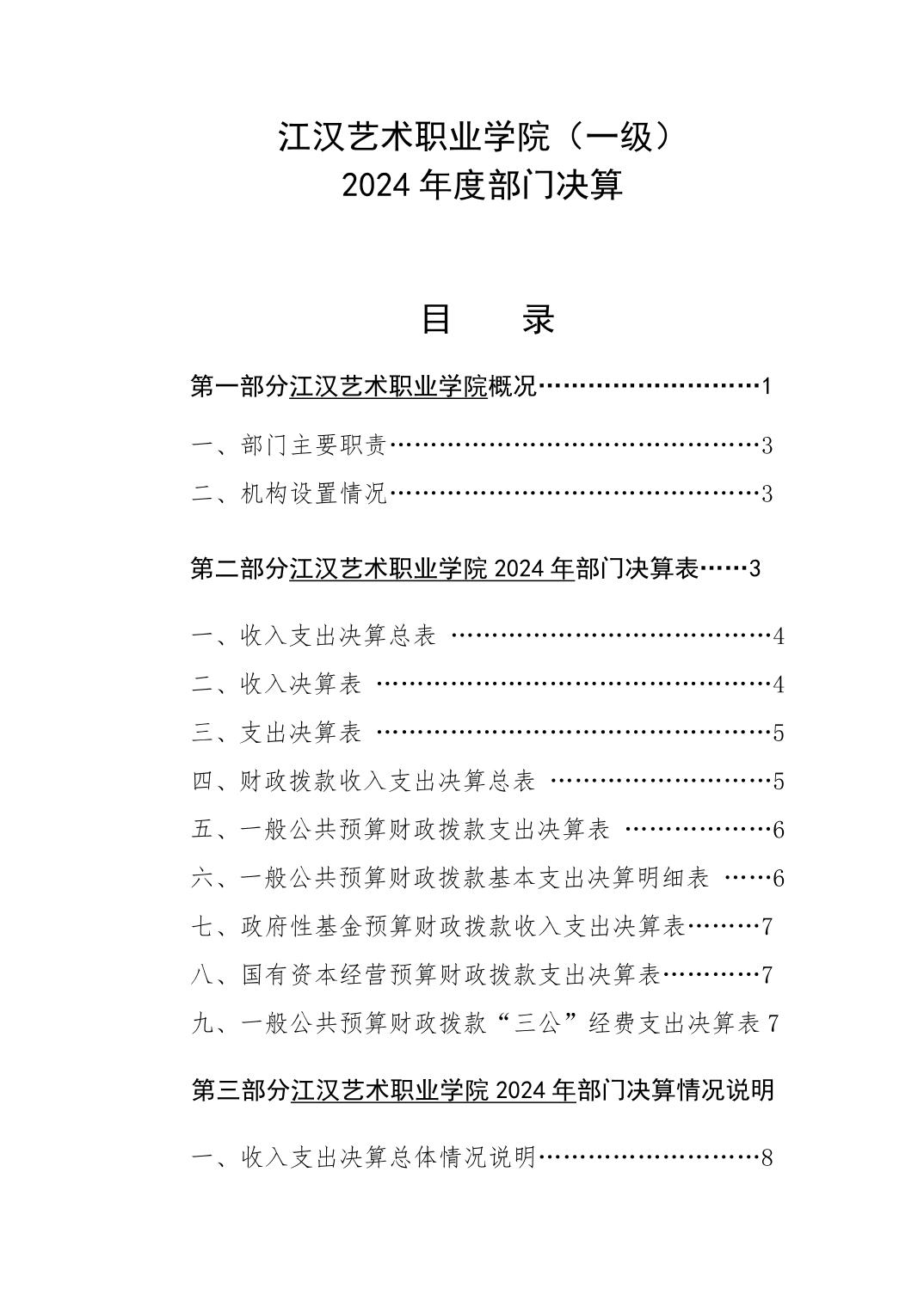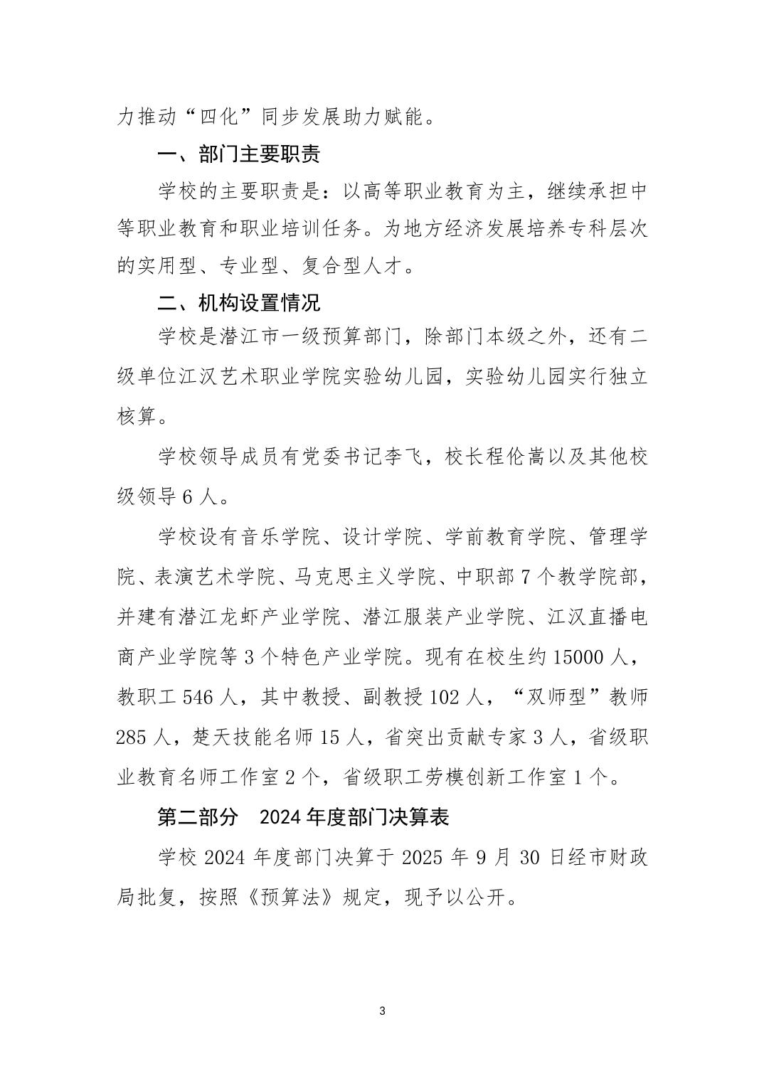 名 称: 江汉艺术职业学院一级2024年度部门决算
