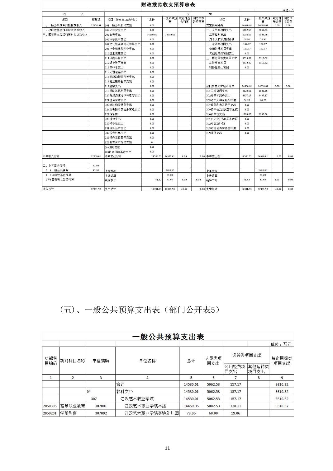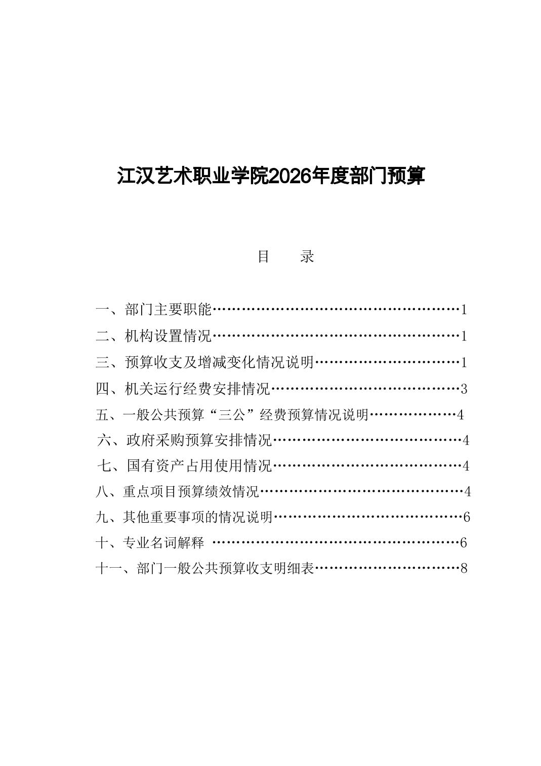 名 称: 江汉艺术职业学院2026年度部门预算公开