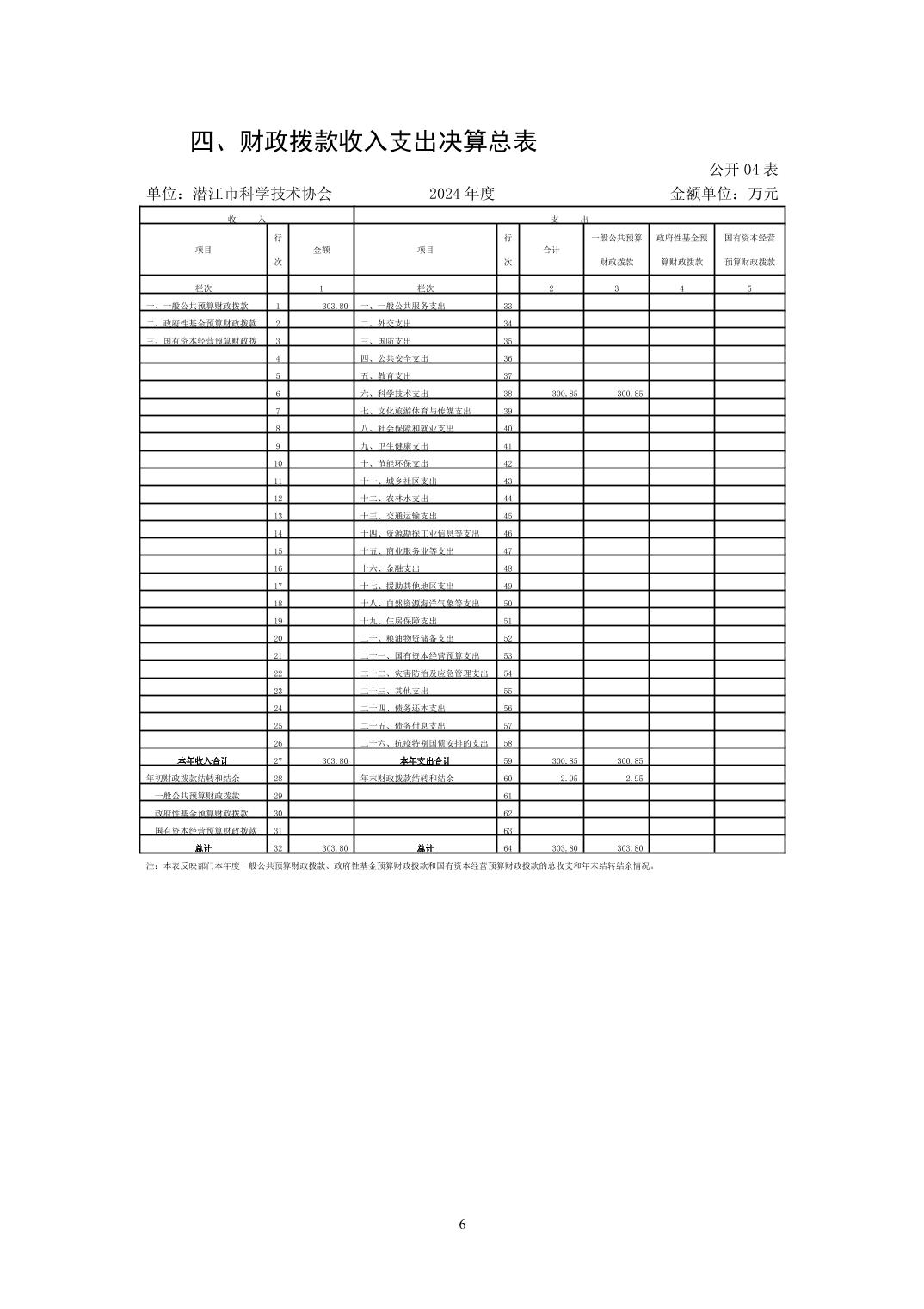 潜江市科学技术协会2024年度部门决算