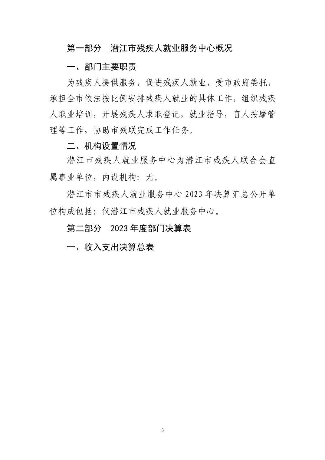 名 称: 潜江市残疾人就业服务中心2023年度部门决算