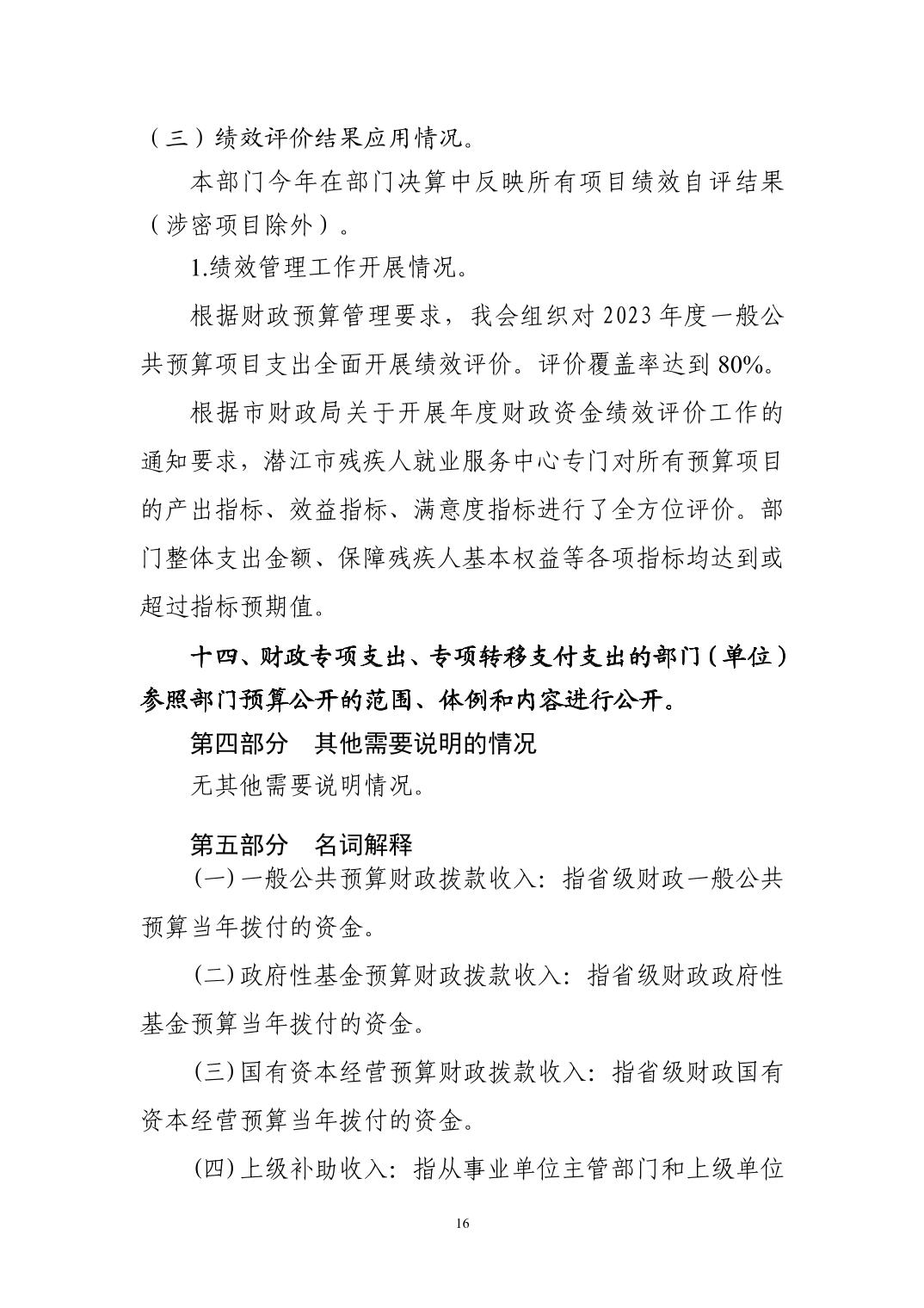潜江市残疾人就业服务中心2023年度部门决算