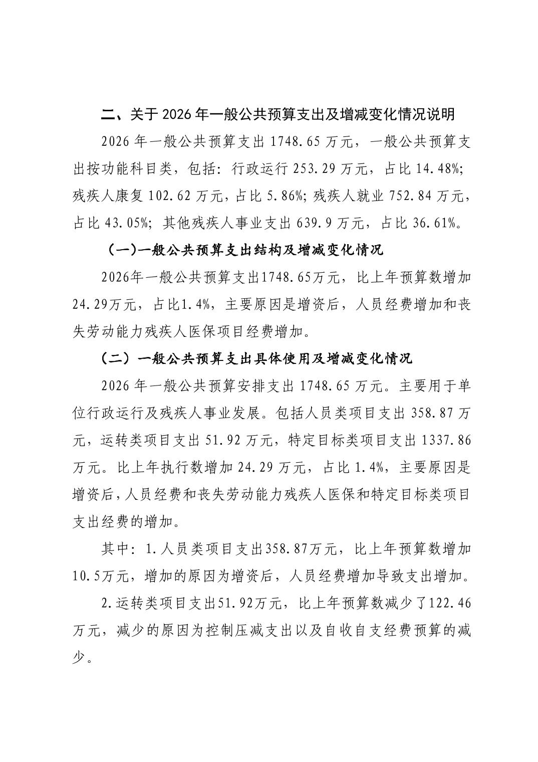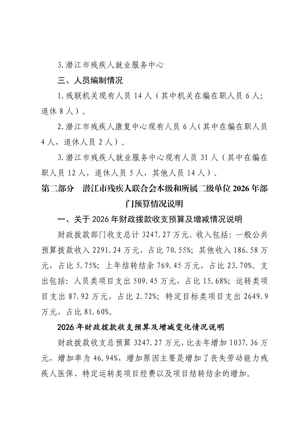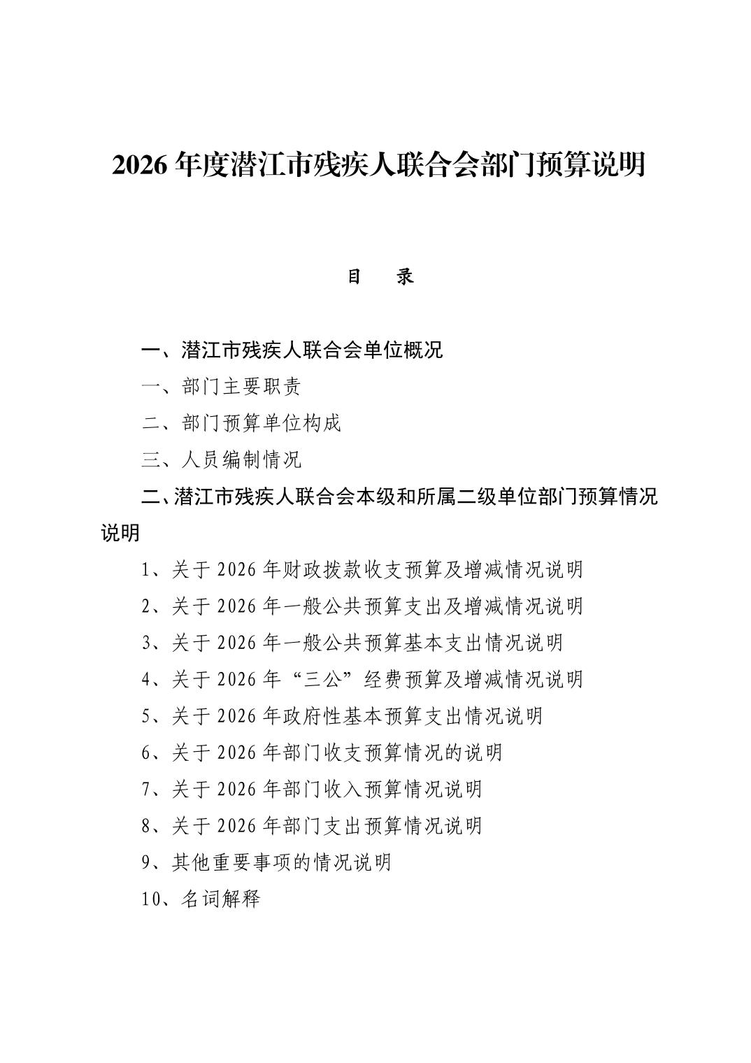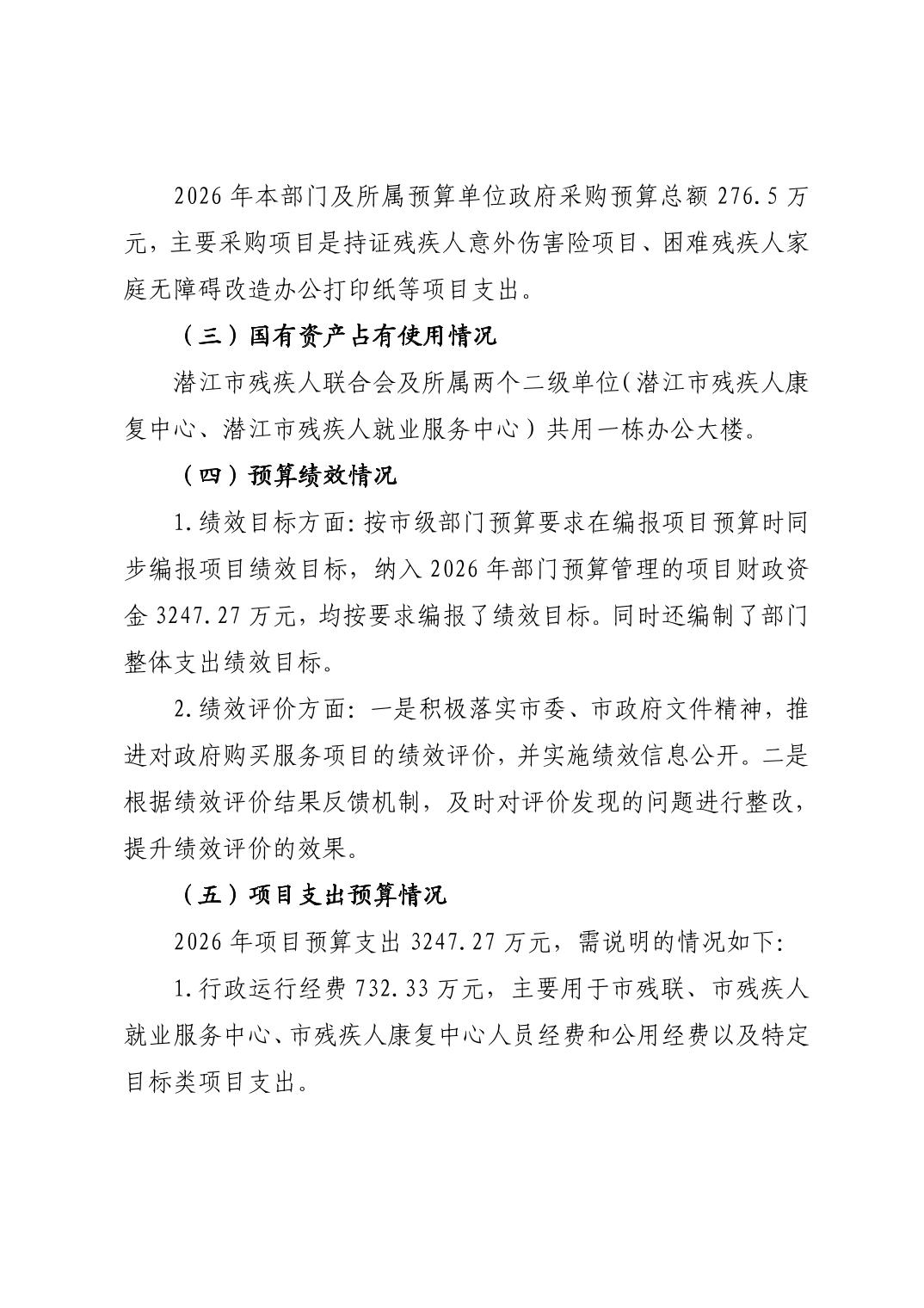 名 称: 2026年度潜江市残疾人联合会部门预算说明