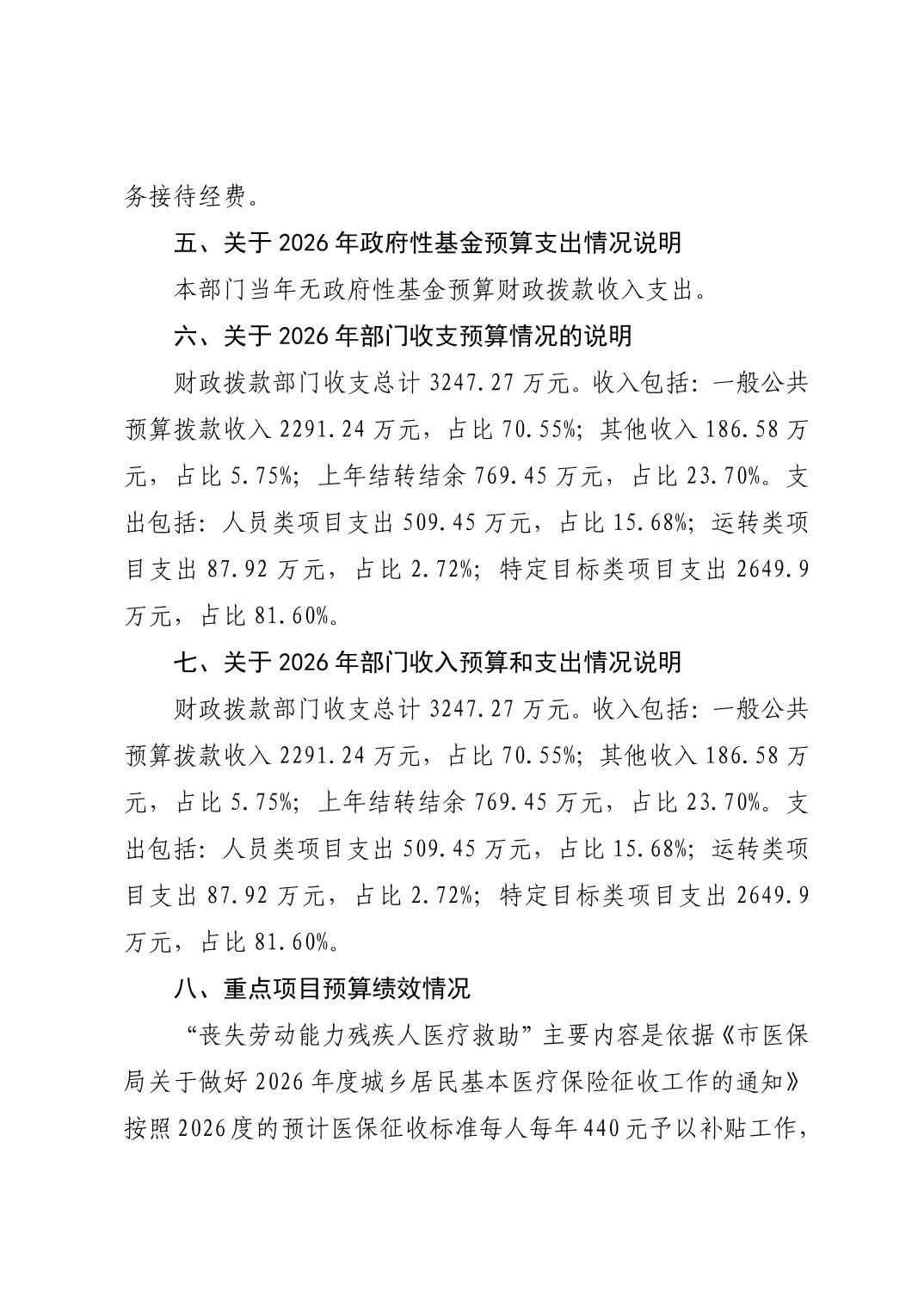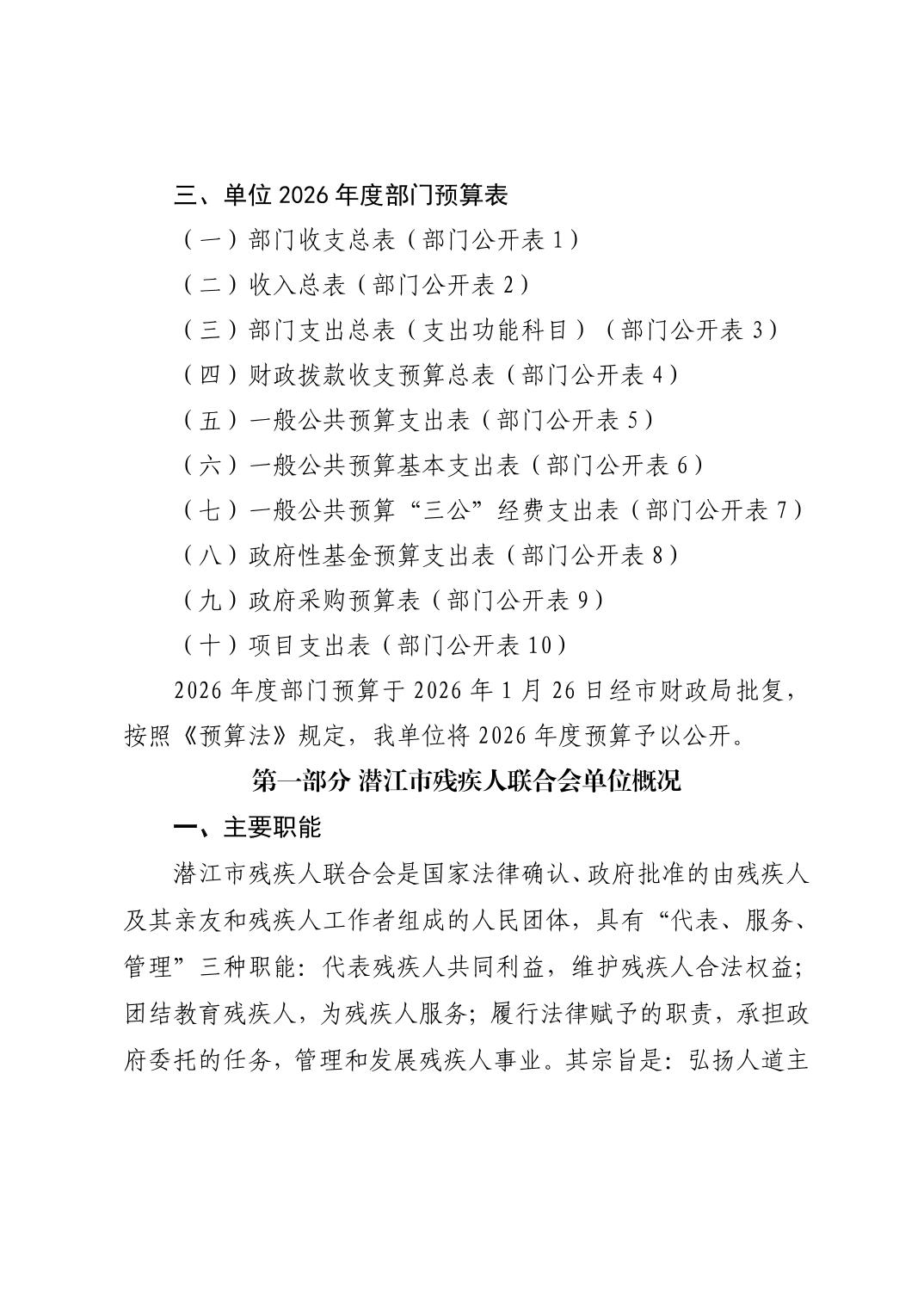 2026年度潜江市残疾人联合会部门预算说明