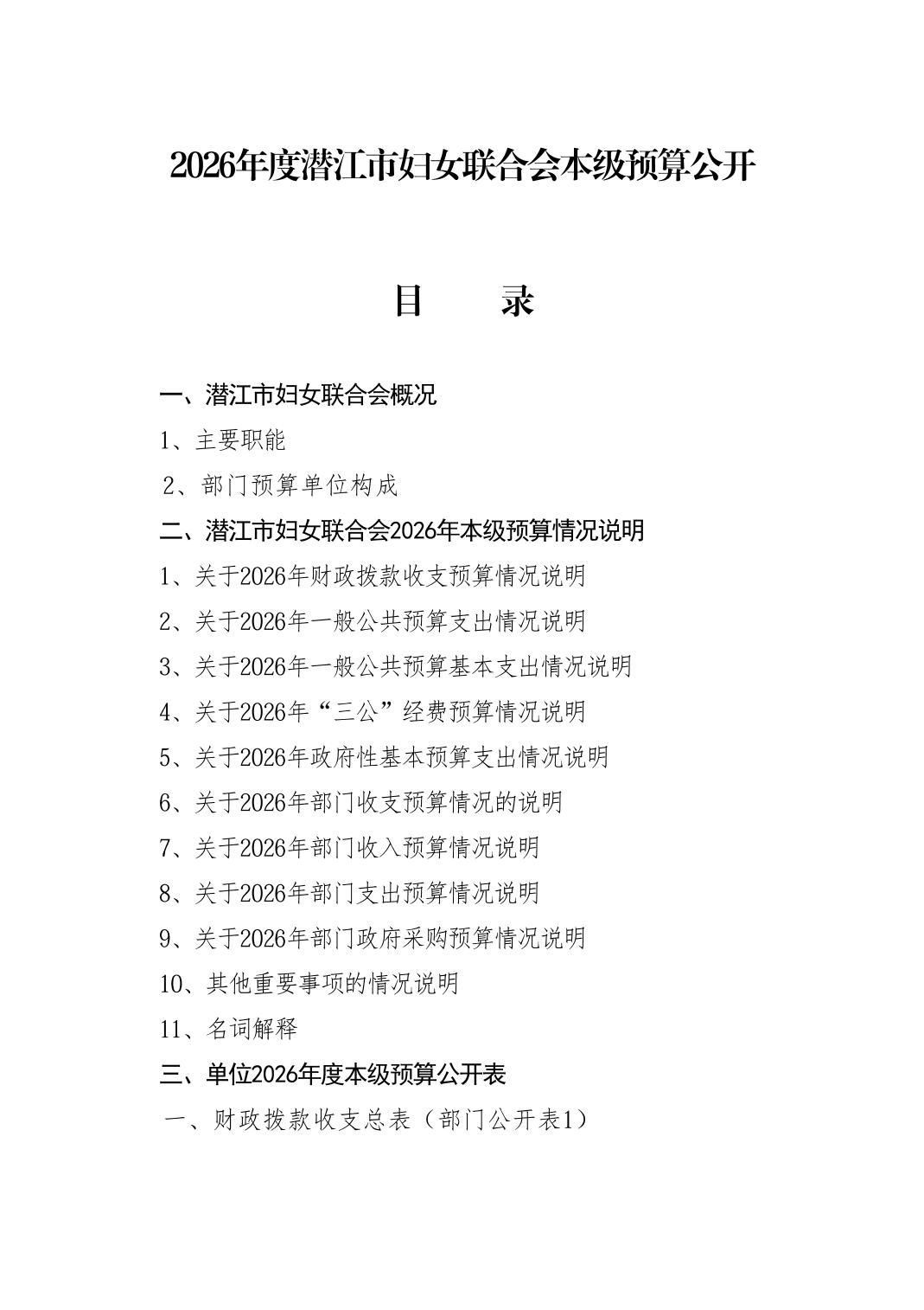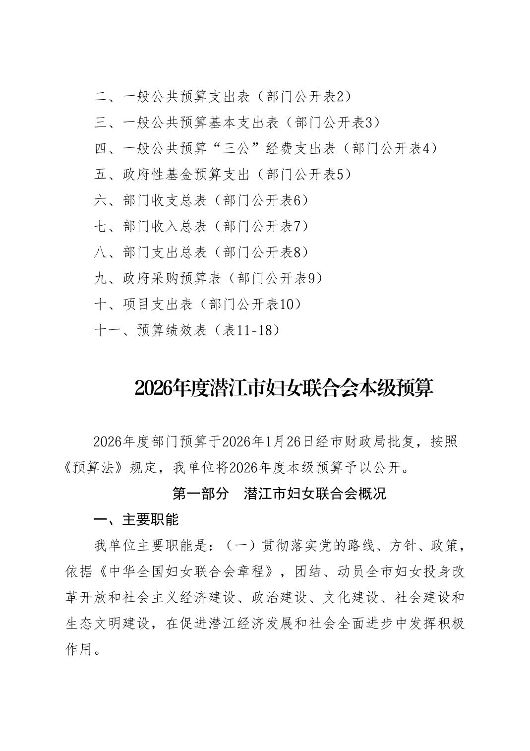 名 称: 2026年度潜江市妇女联合会本级预算公开