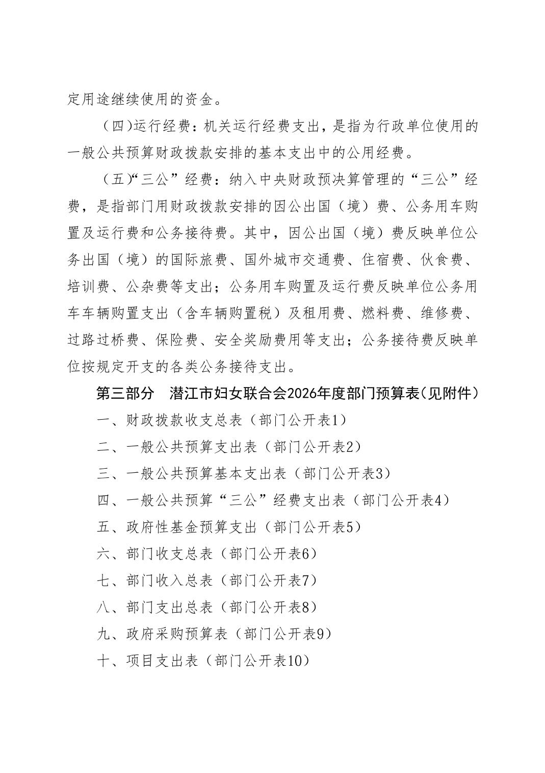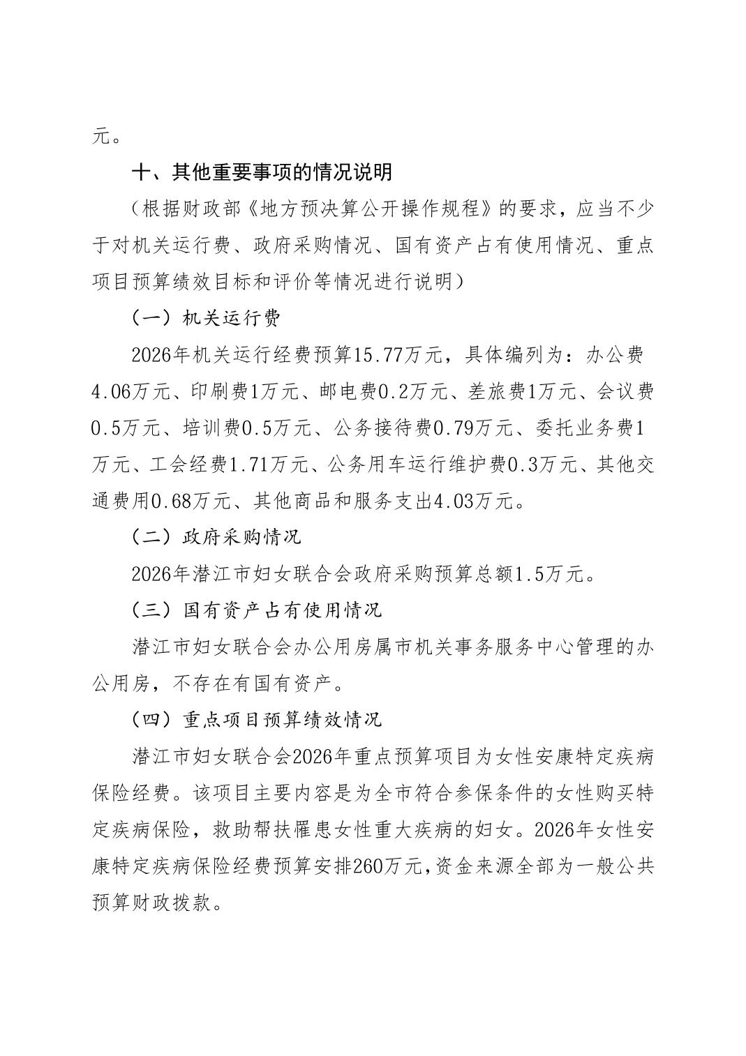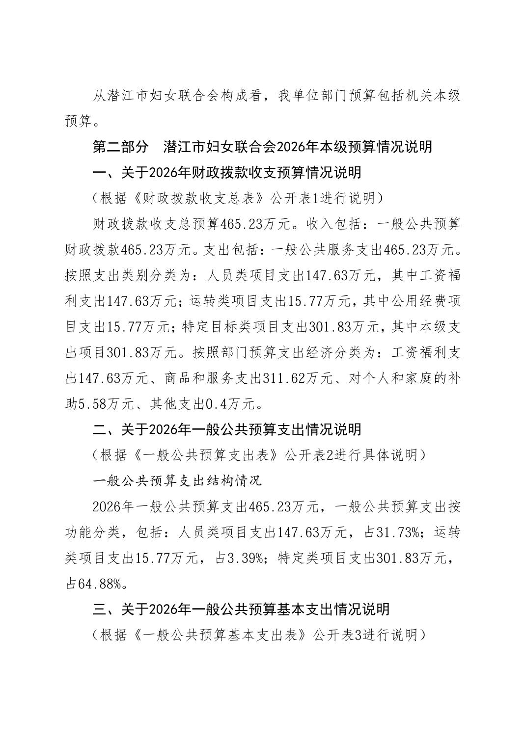 2026年度潜江市妇女联合会本级预算公开