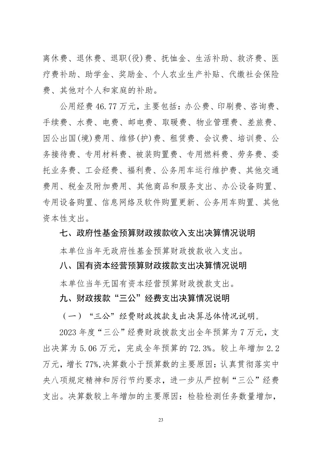 潜江市公共检验检测中心2023年度部门决算