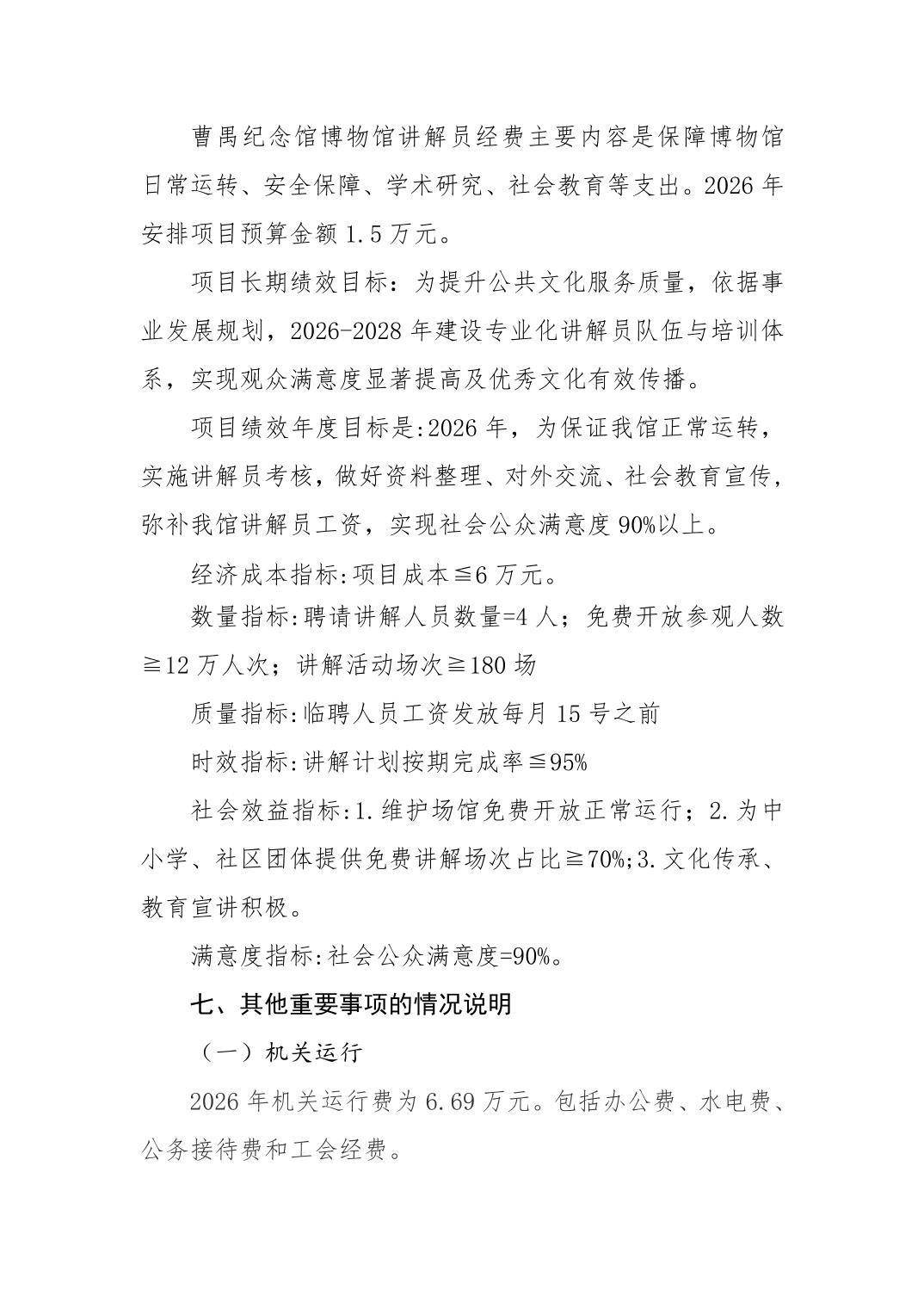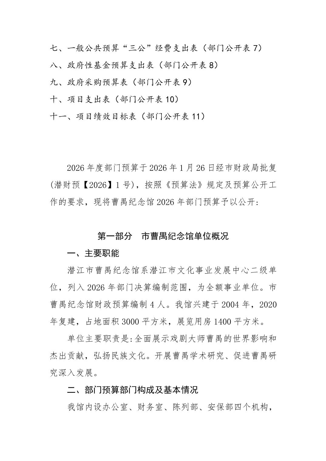 市曹禺纪念馆2026年部门预算