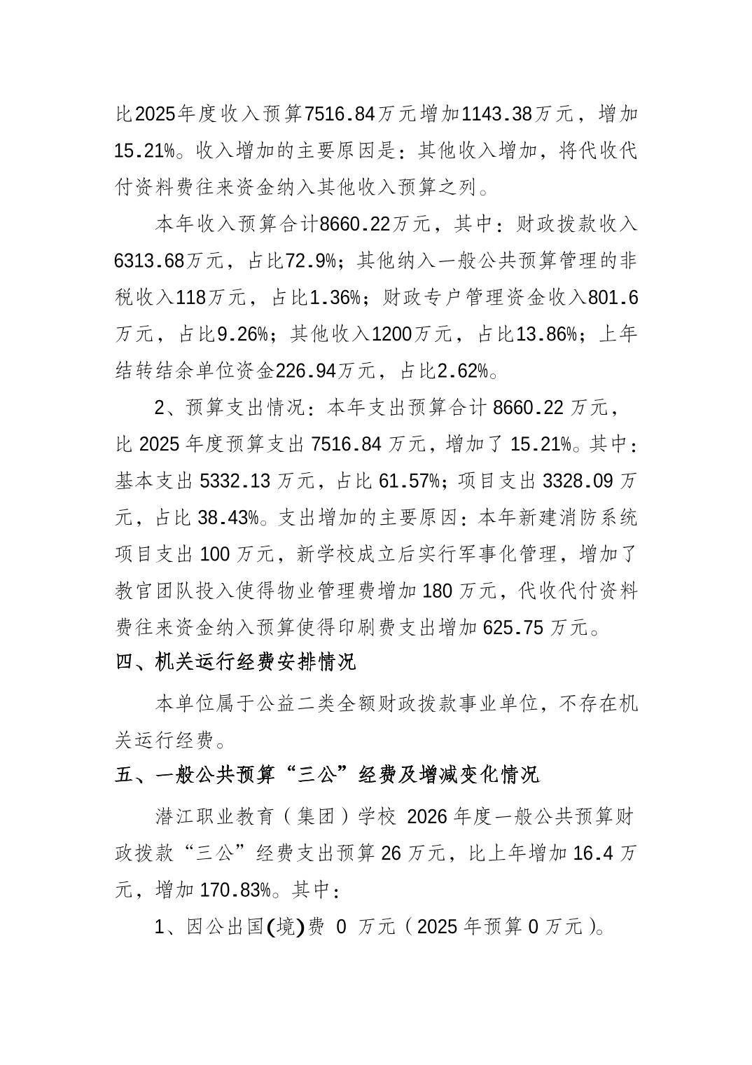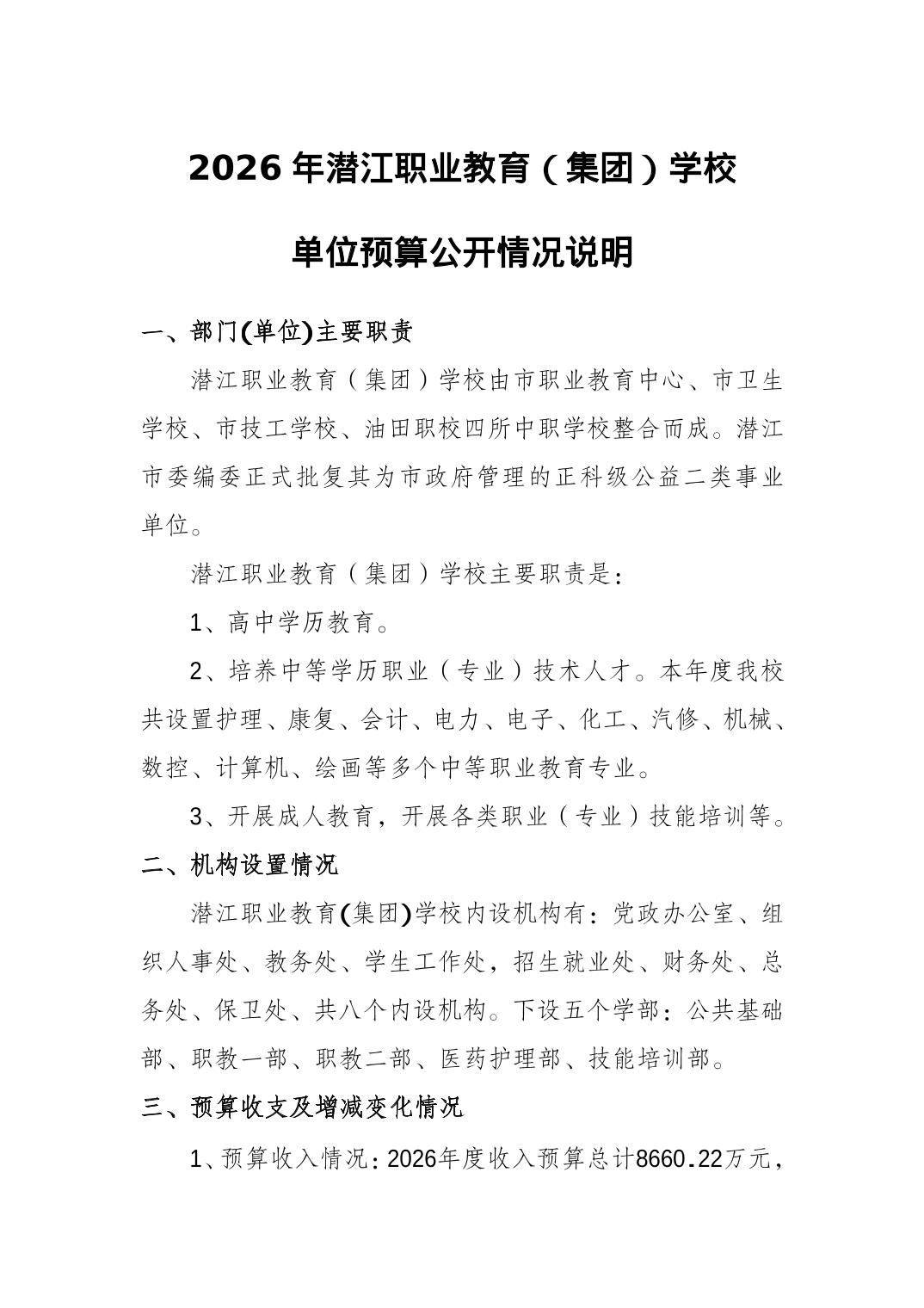 名 称: 2026年潜江职业教育(集团)学校单位预算