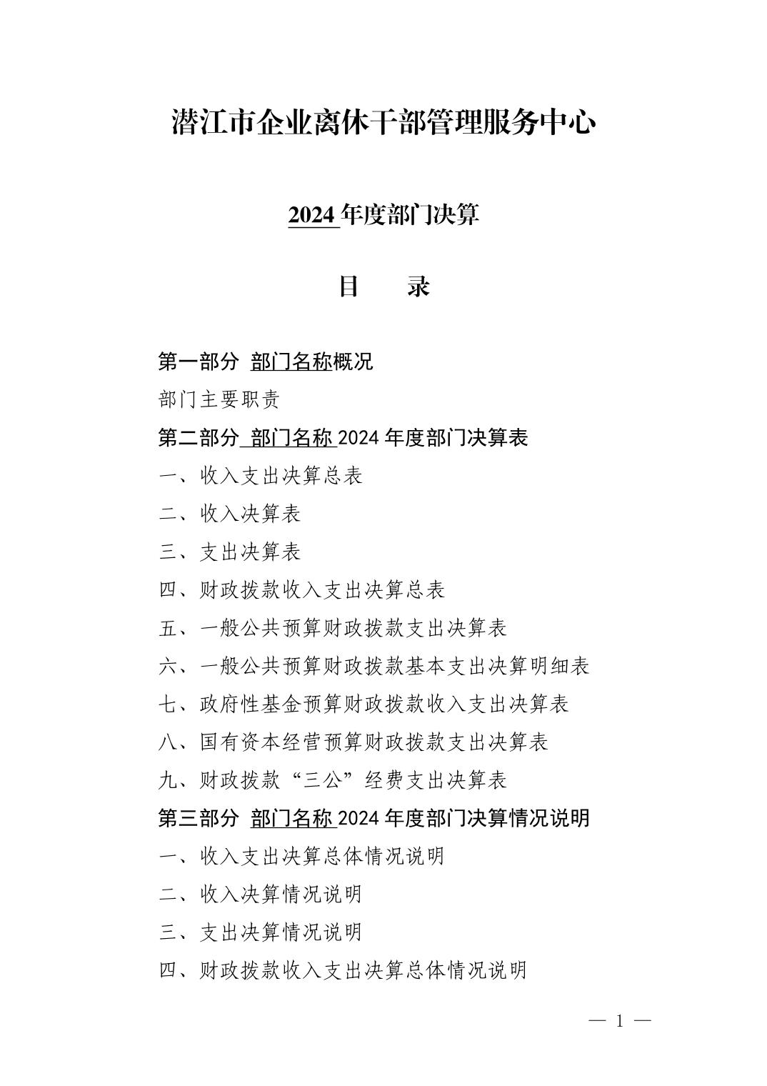 名 称: 潜江市企业离休干部管理服务中心2024年度部门决算