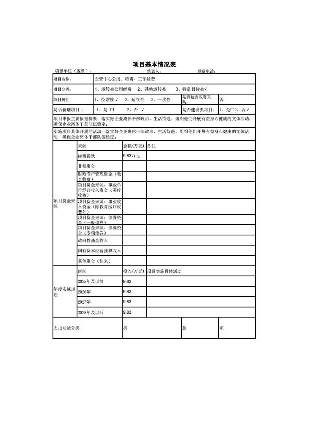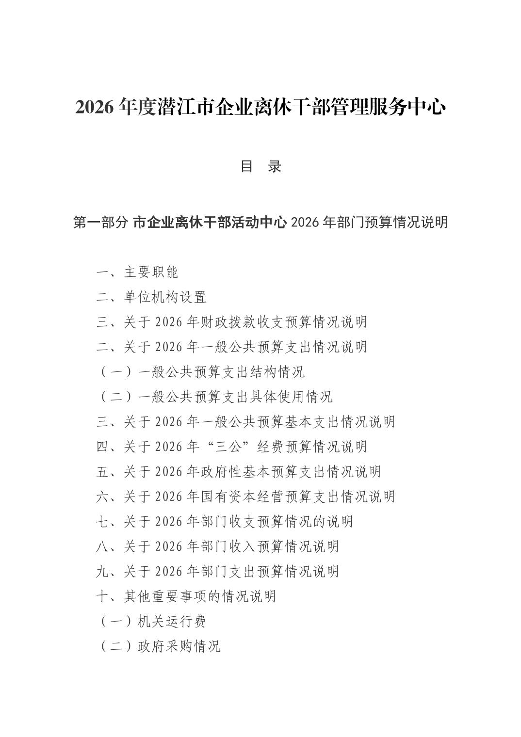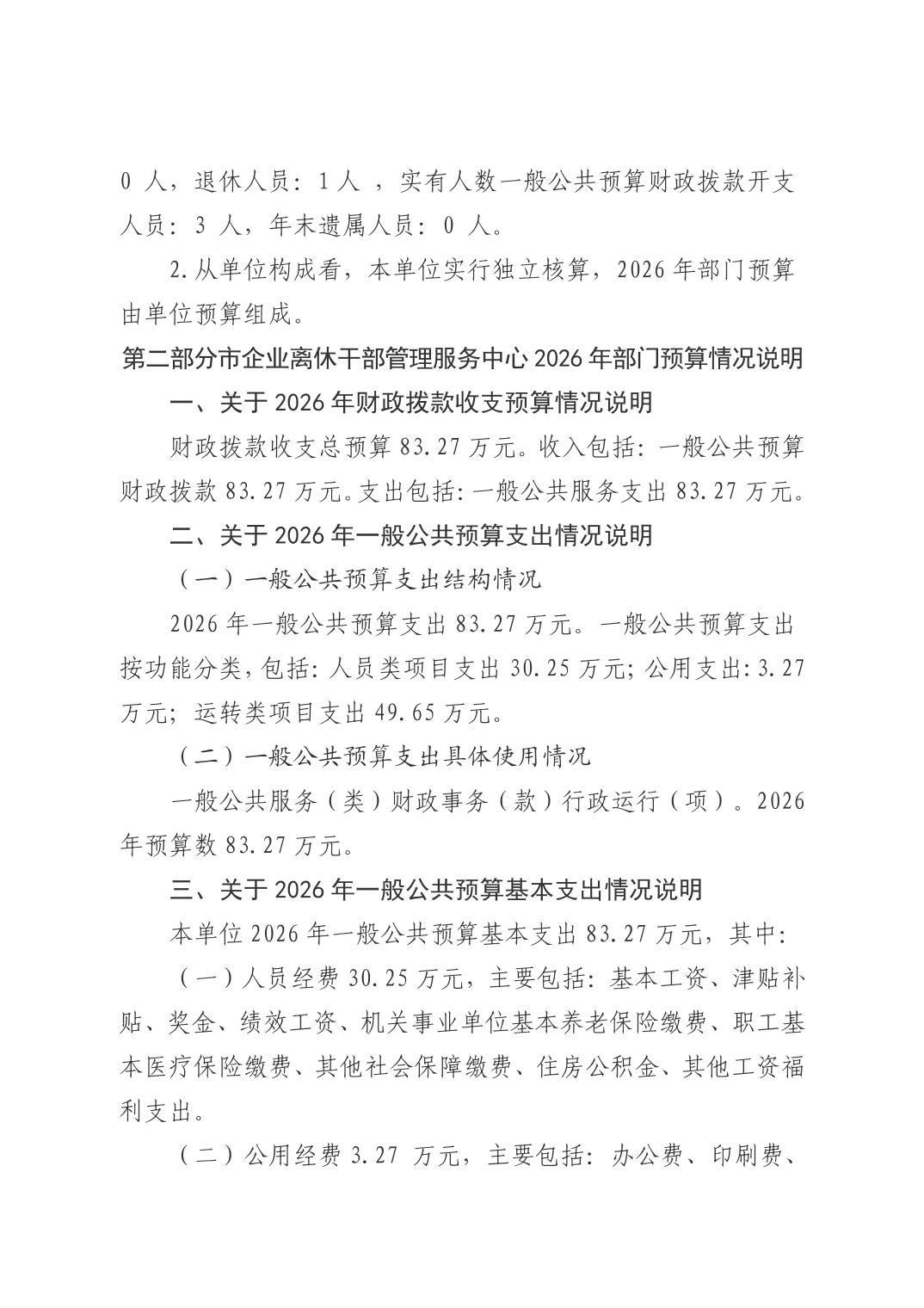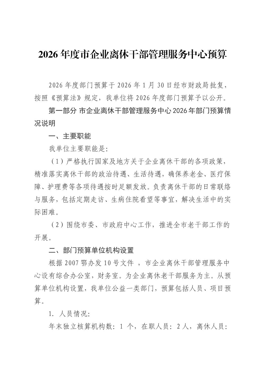 名 称: 2026年度潜江企业离休干部管理服务中心预算