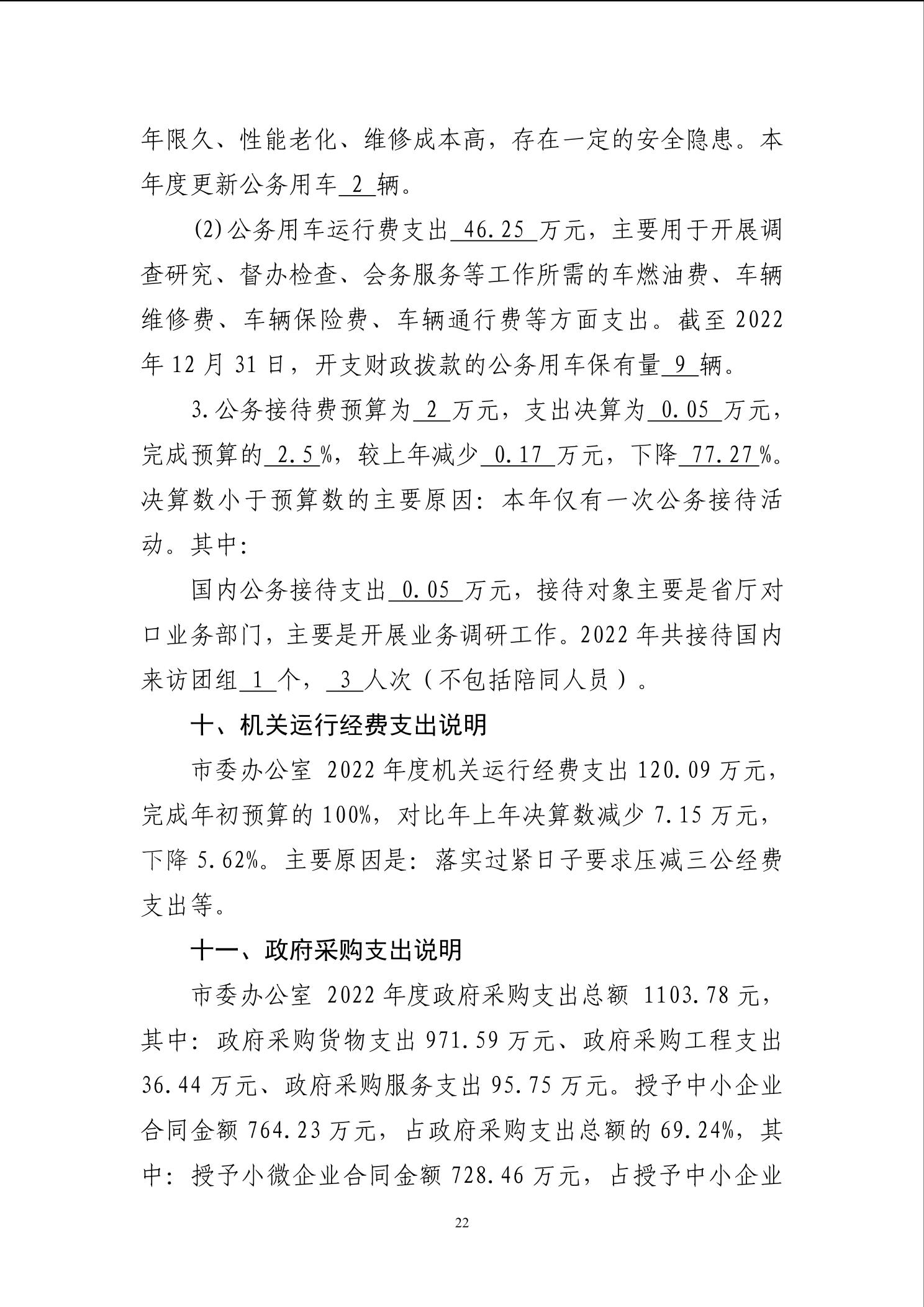 中共潜江市委办公室2022年度部门决算