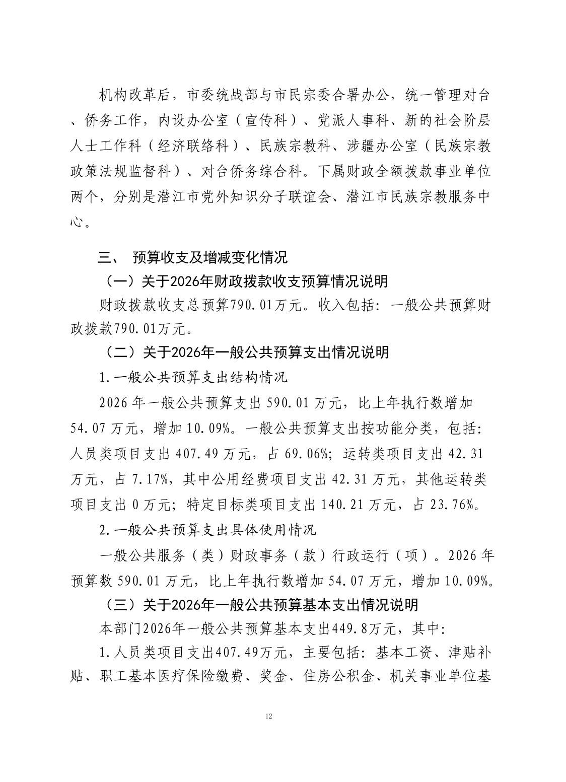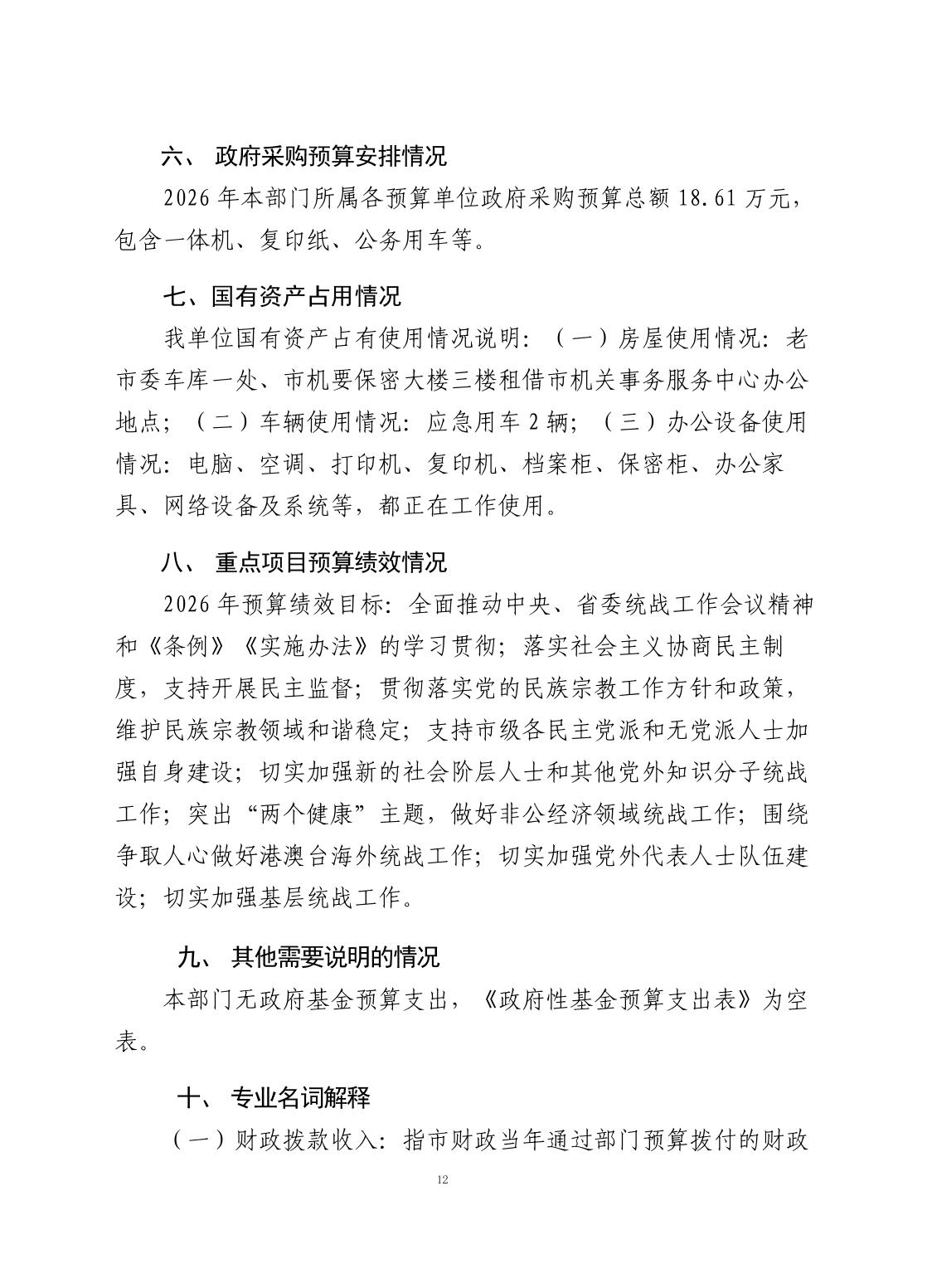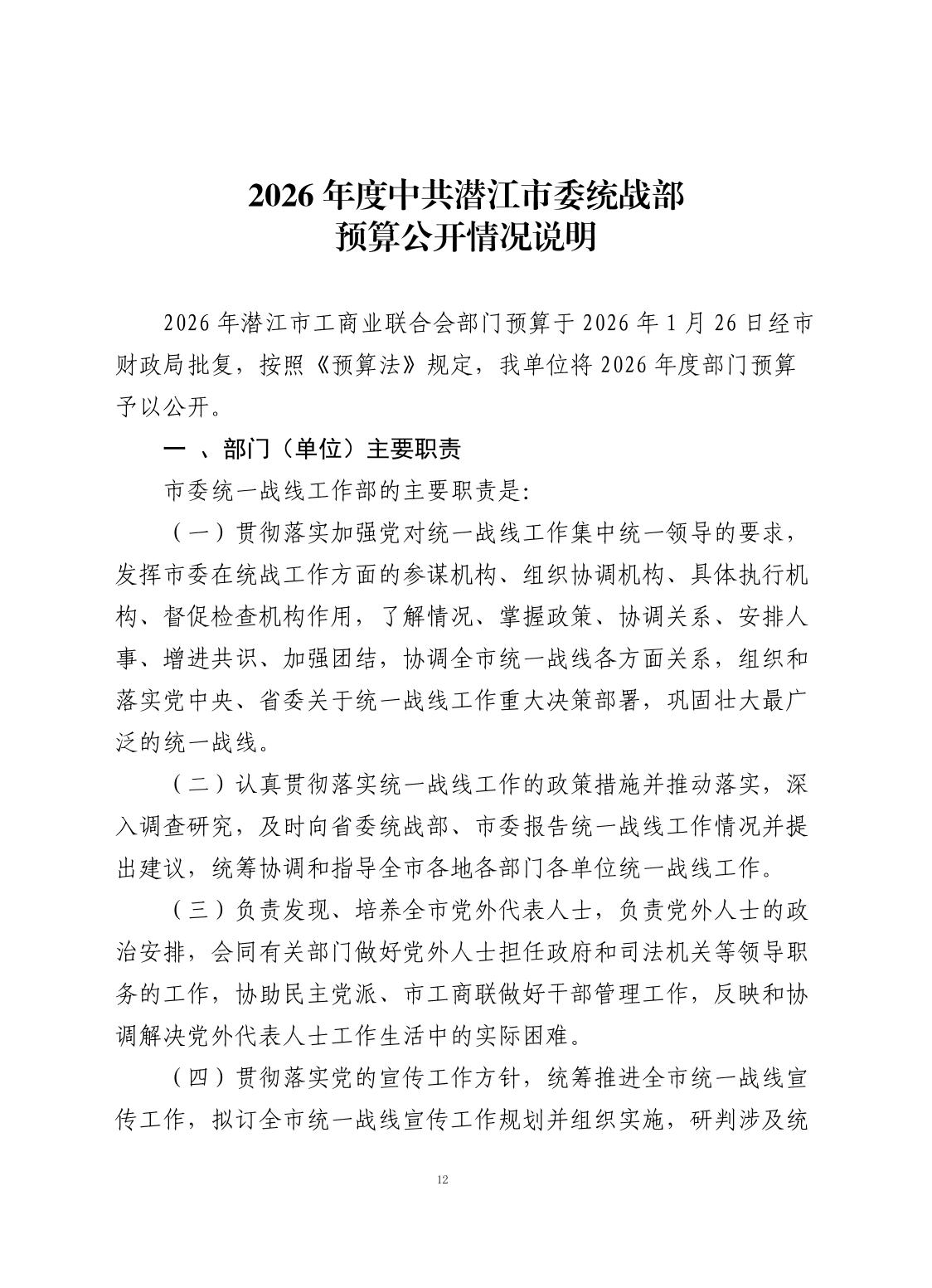 名 称: 2026年度中共潜江市委统战部预算公开情况说明