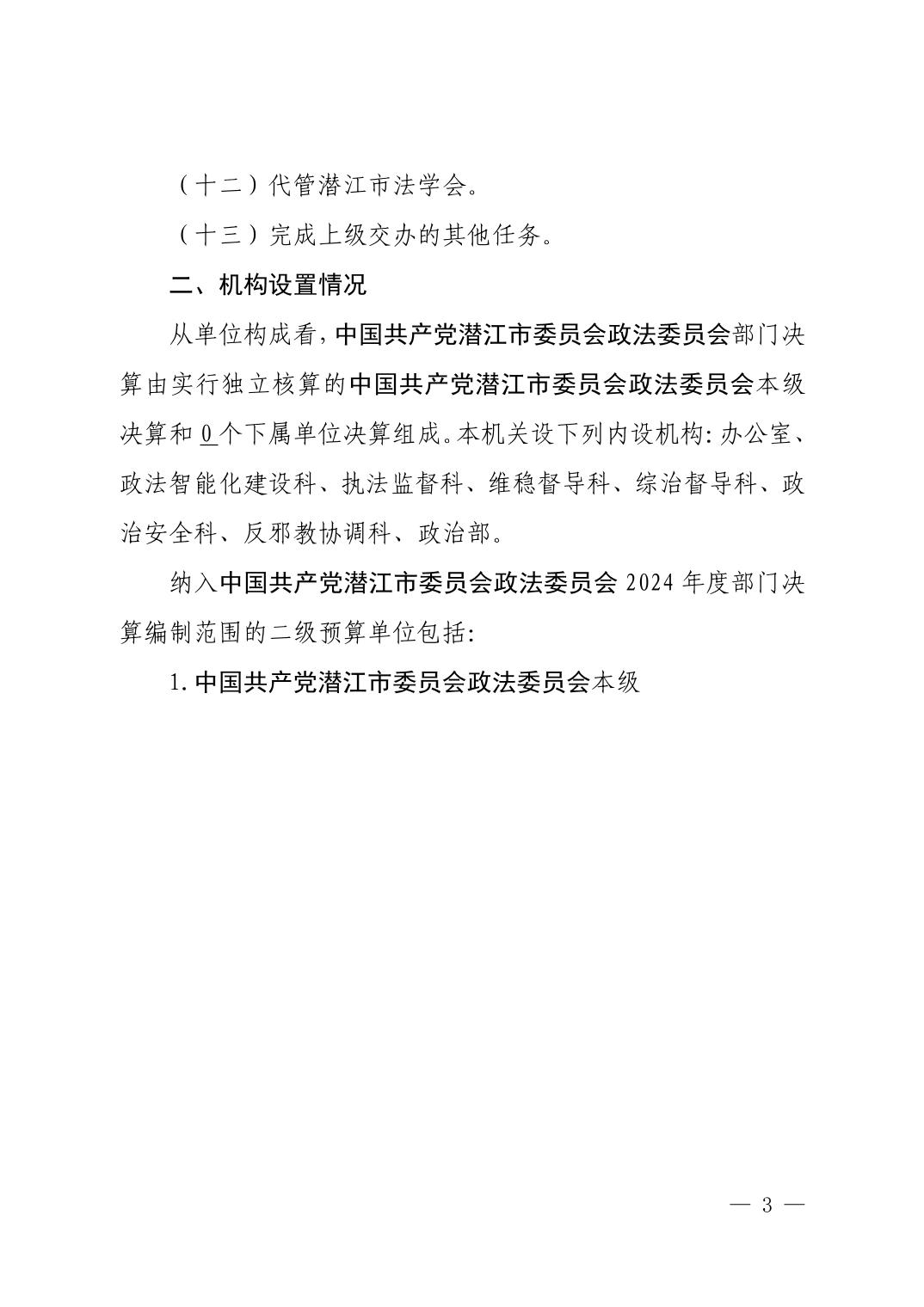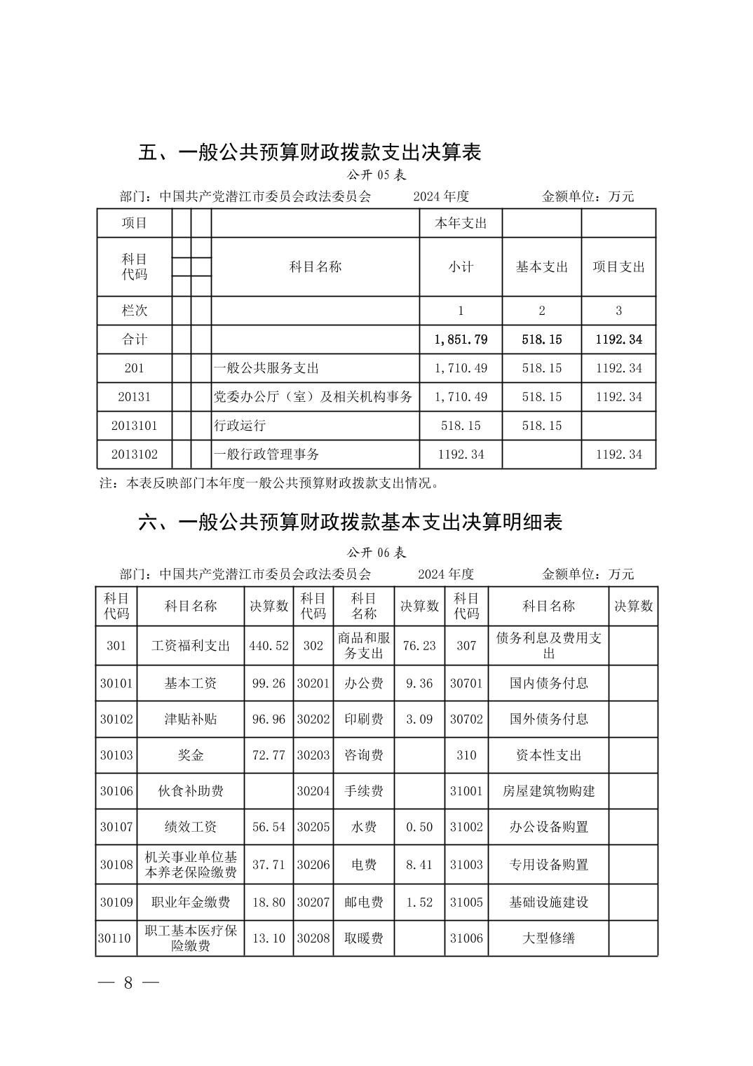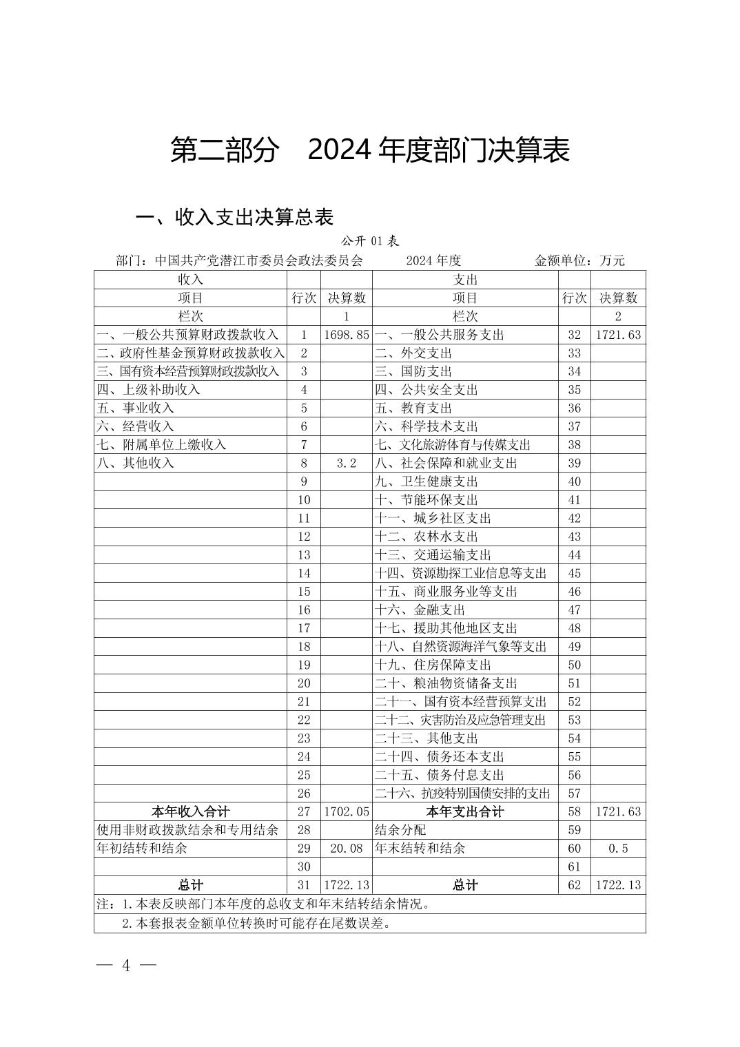 中国共产党潜江市委员会政法委员会2024年度部门决算