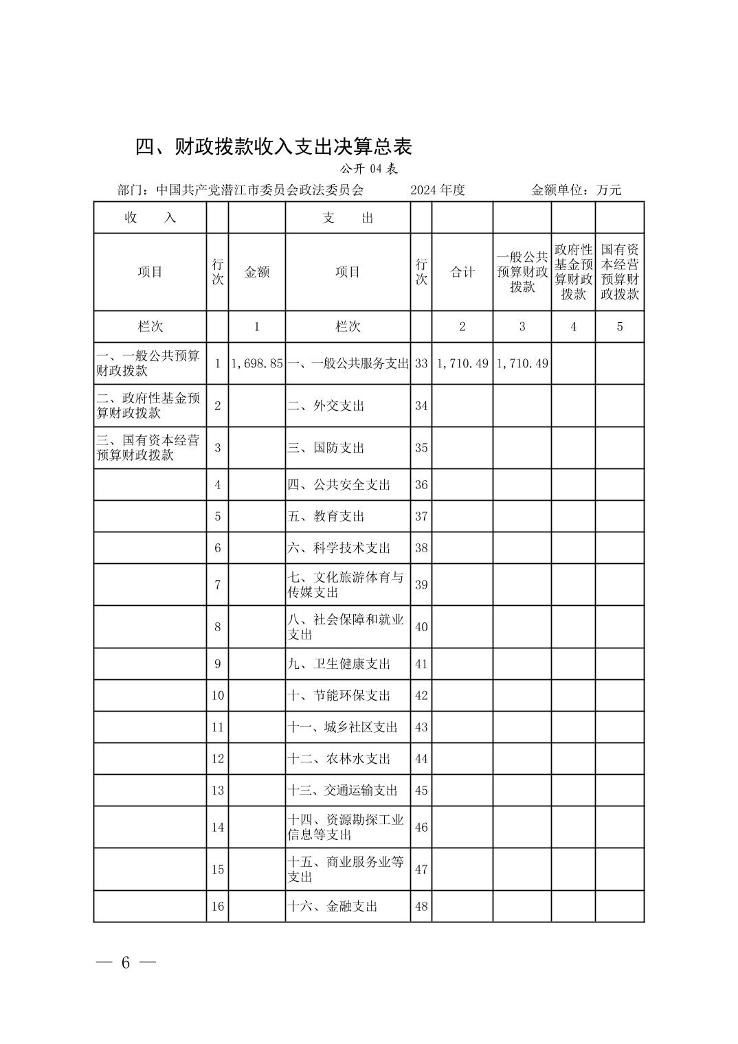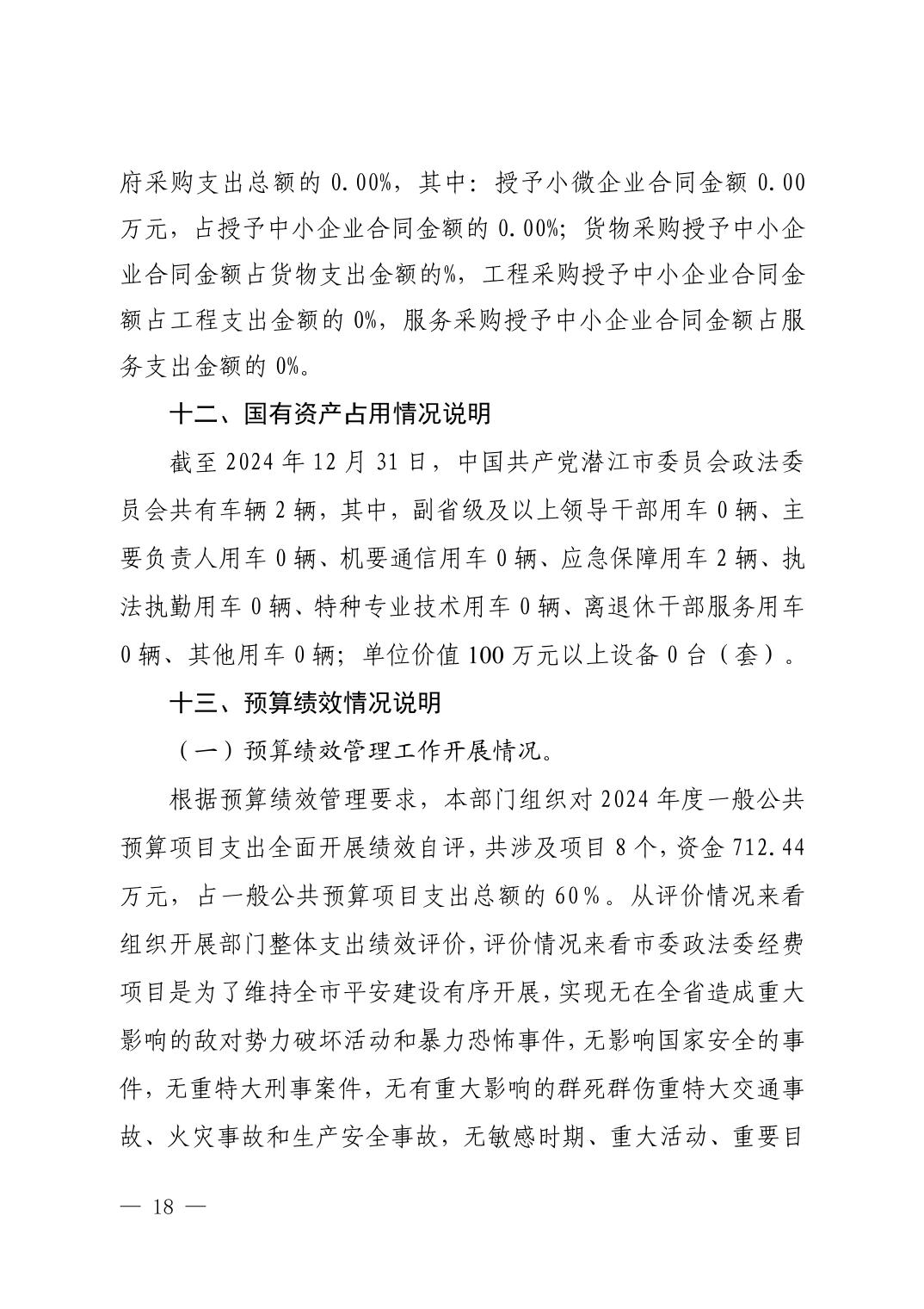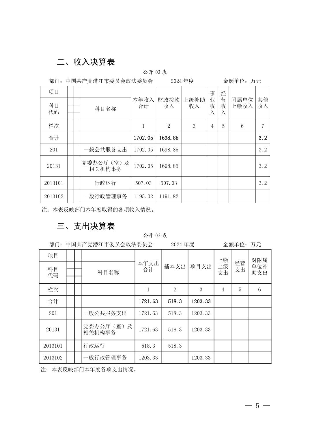 中国共产党潜江市委员会政法委员会2024年度部门决算