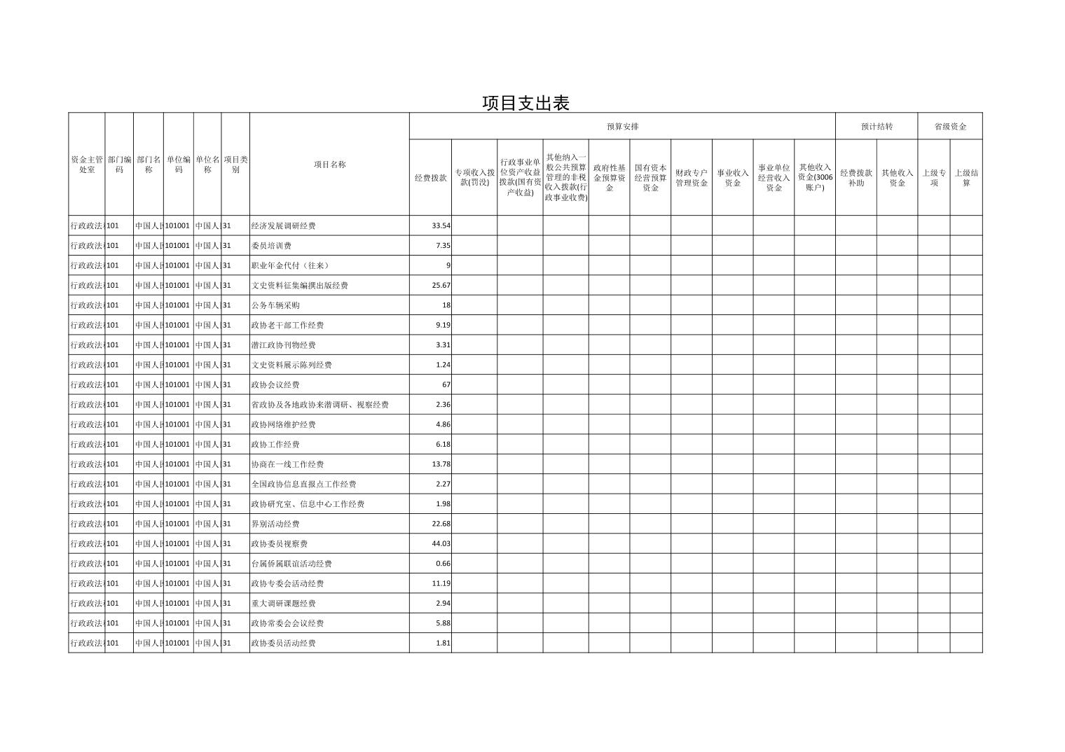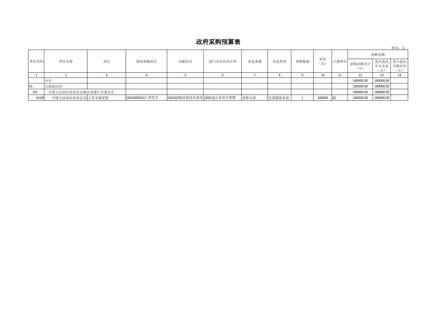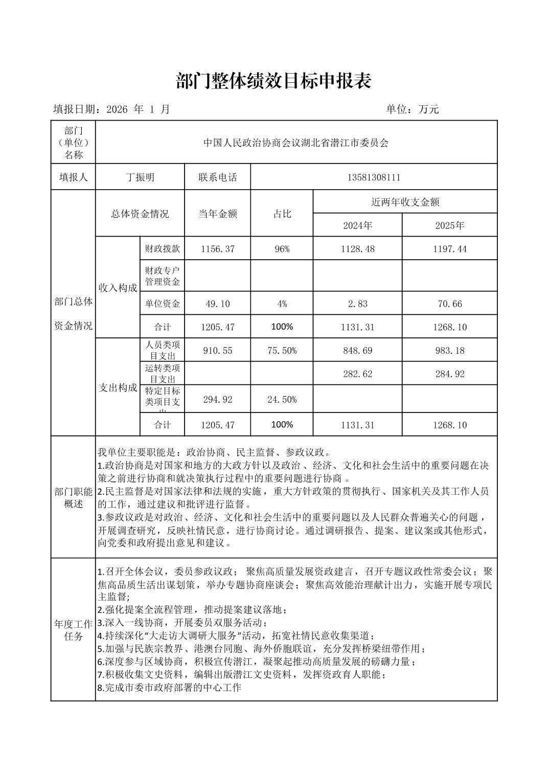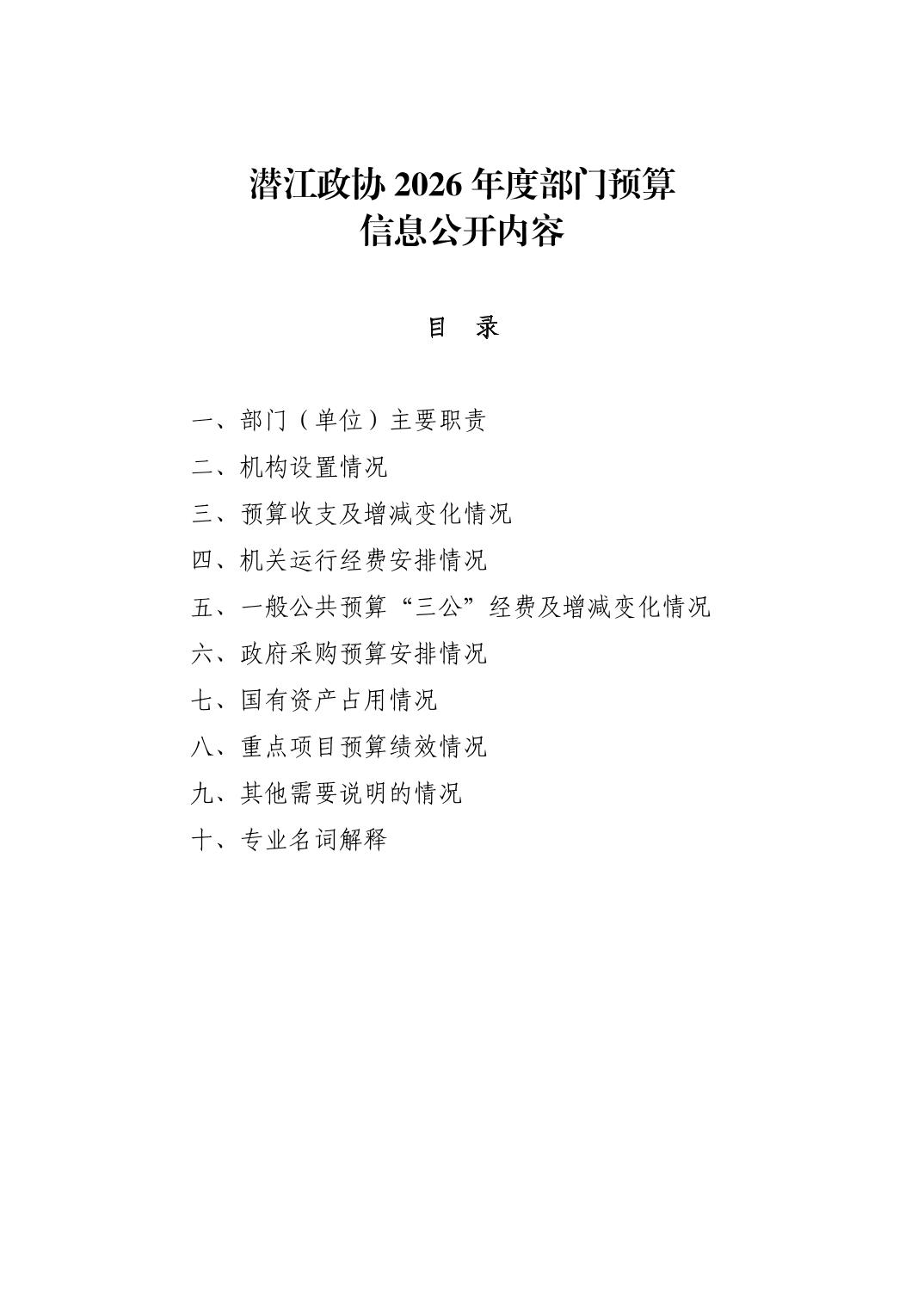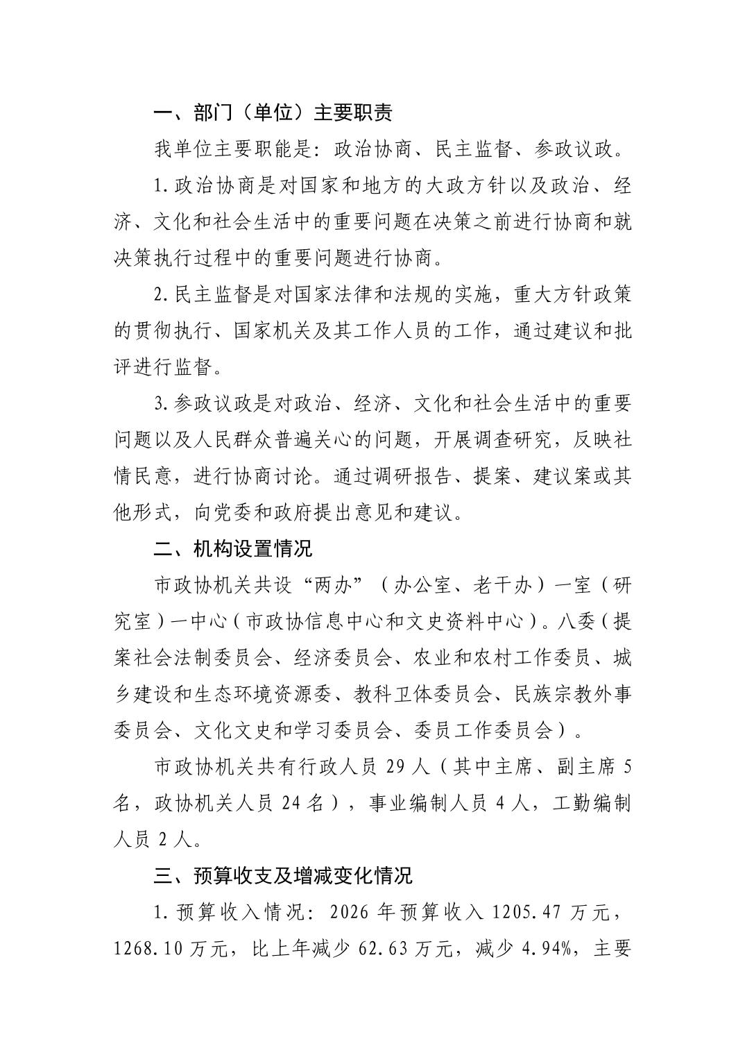 名 称: 2026年度潜江市政协部门预算
