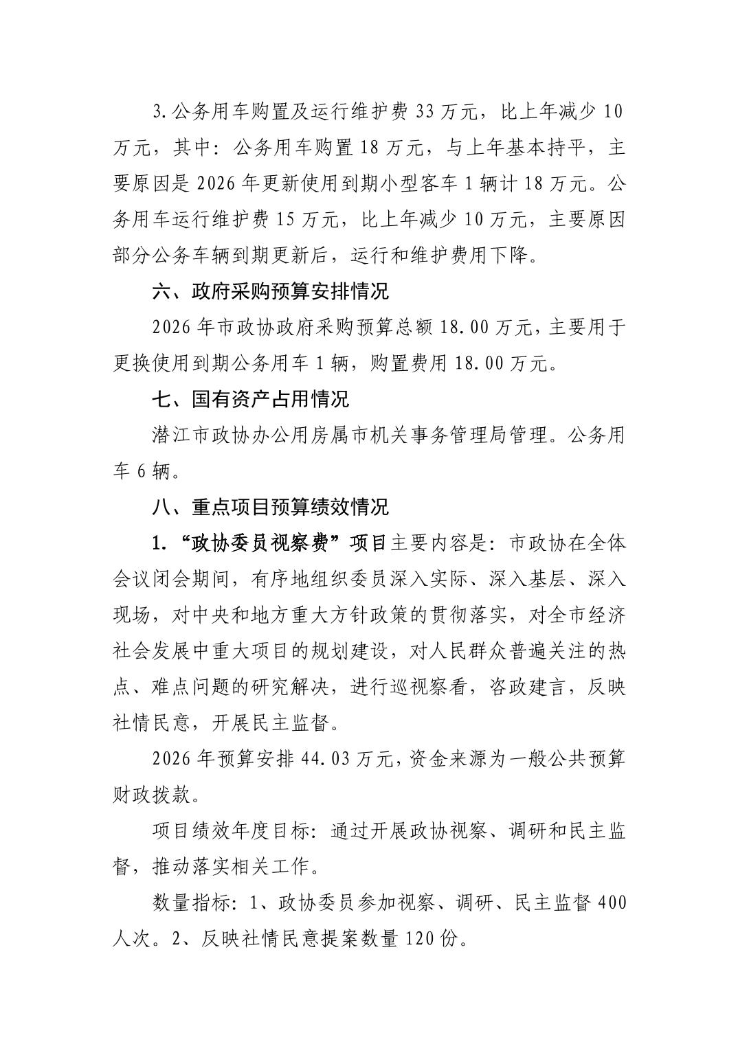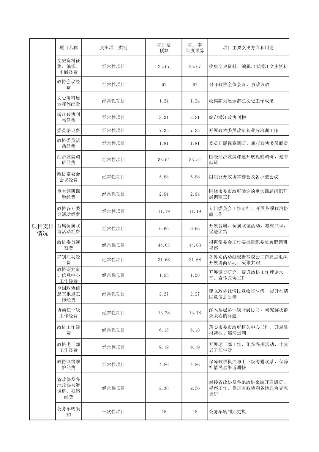 2026年度潜江市政协部门预算