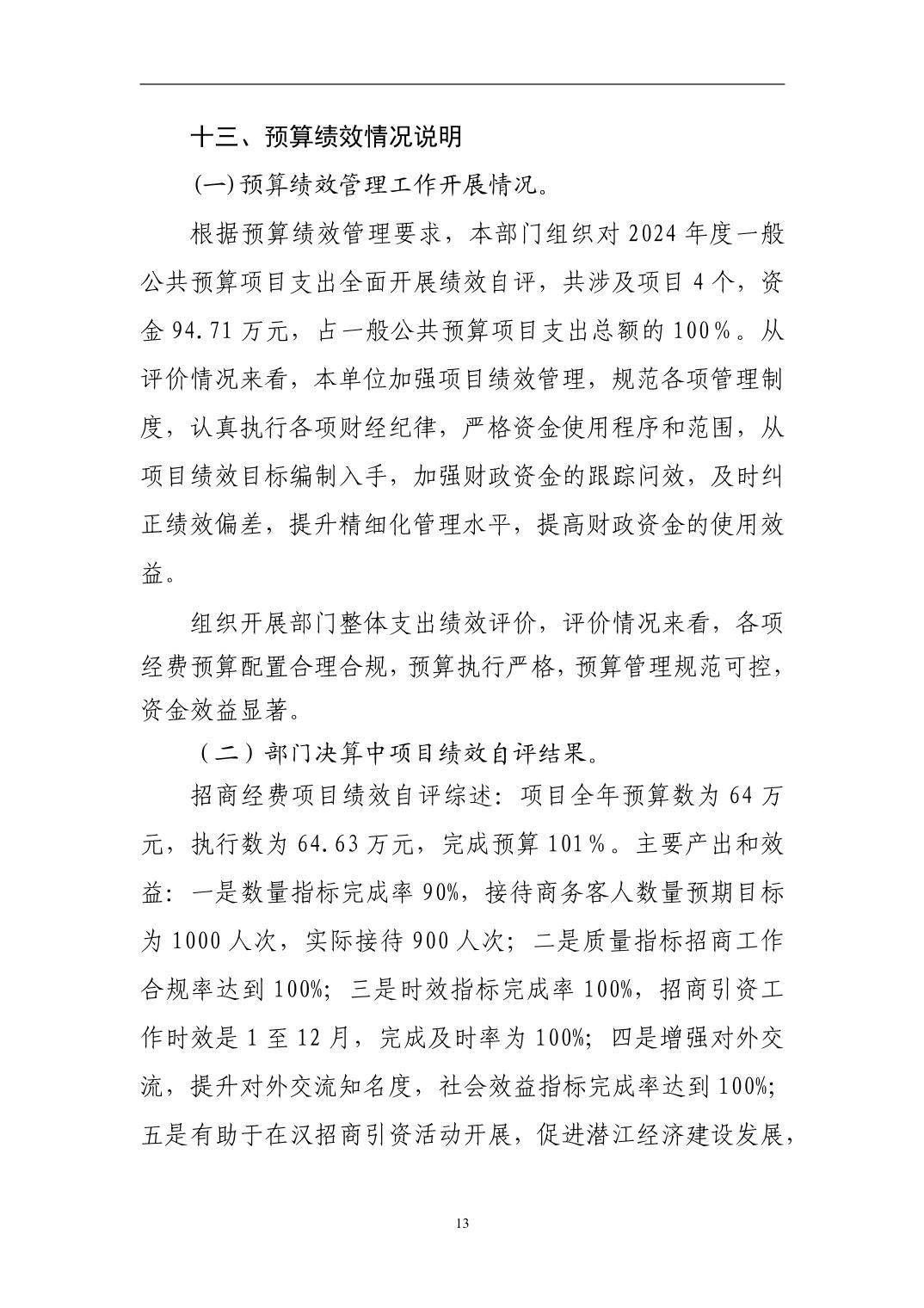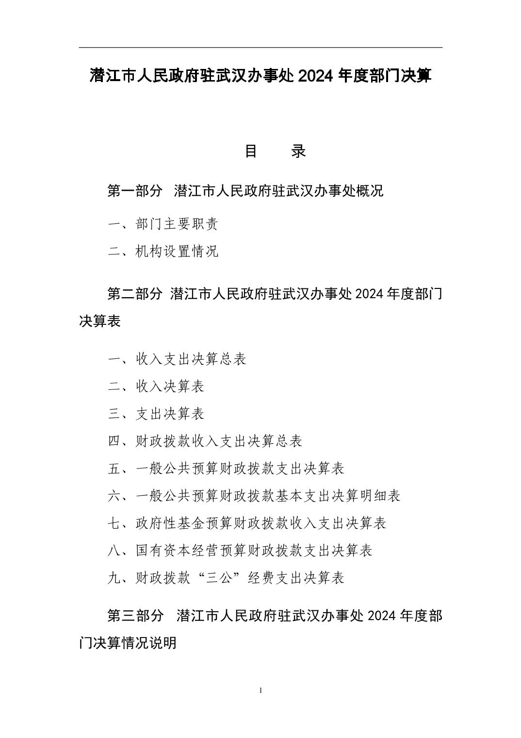 名 称: 潜江市人民政府驻武汉办事处2024年度部门决算