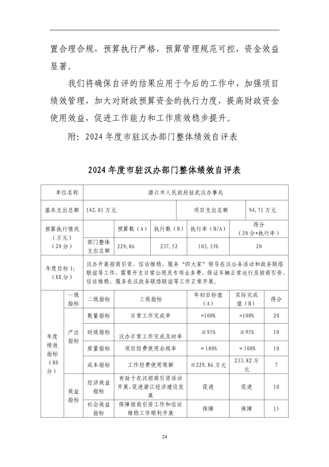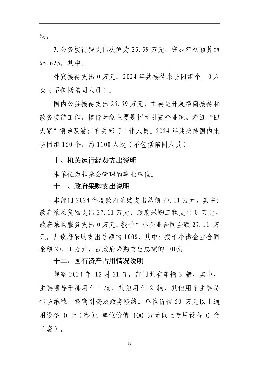 潜江市人民政府驻武汉办事处2024年度部门决算