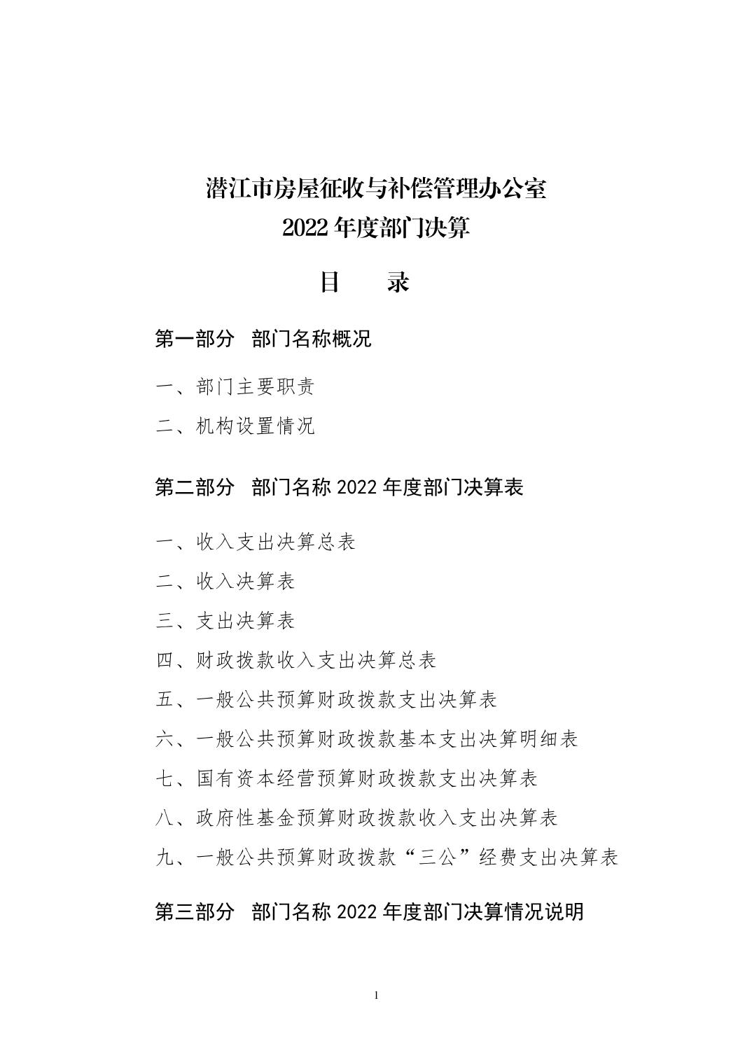 潜江市房屋征收与补偿管理办公室 2022 年度部门决算