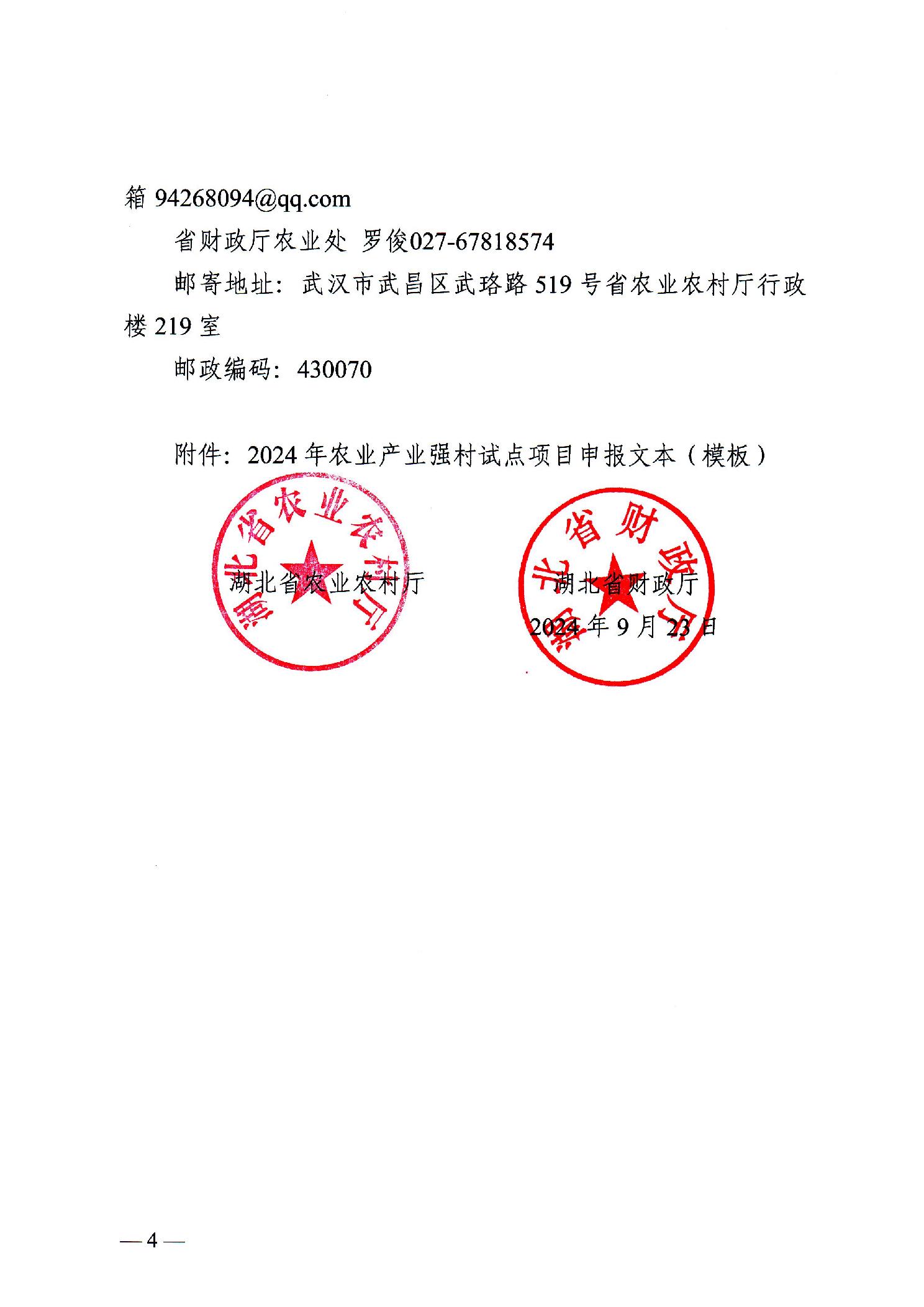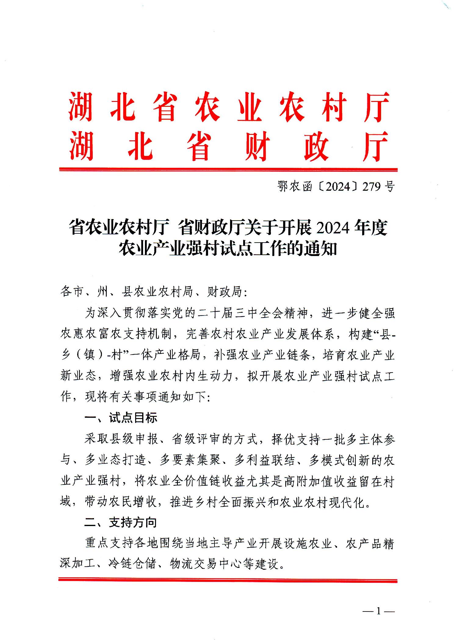 省农业农村厅 省财政厅关于开展2024年度农业产业强村试点工作的通知