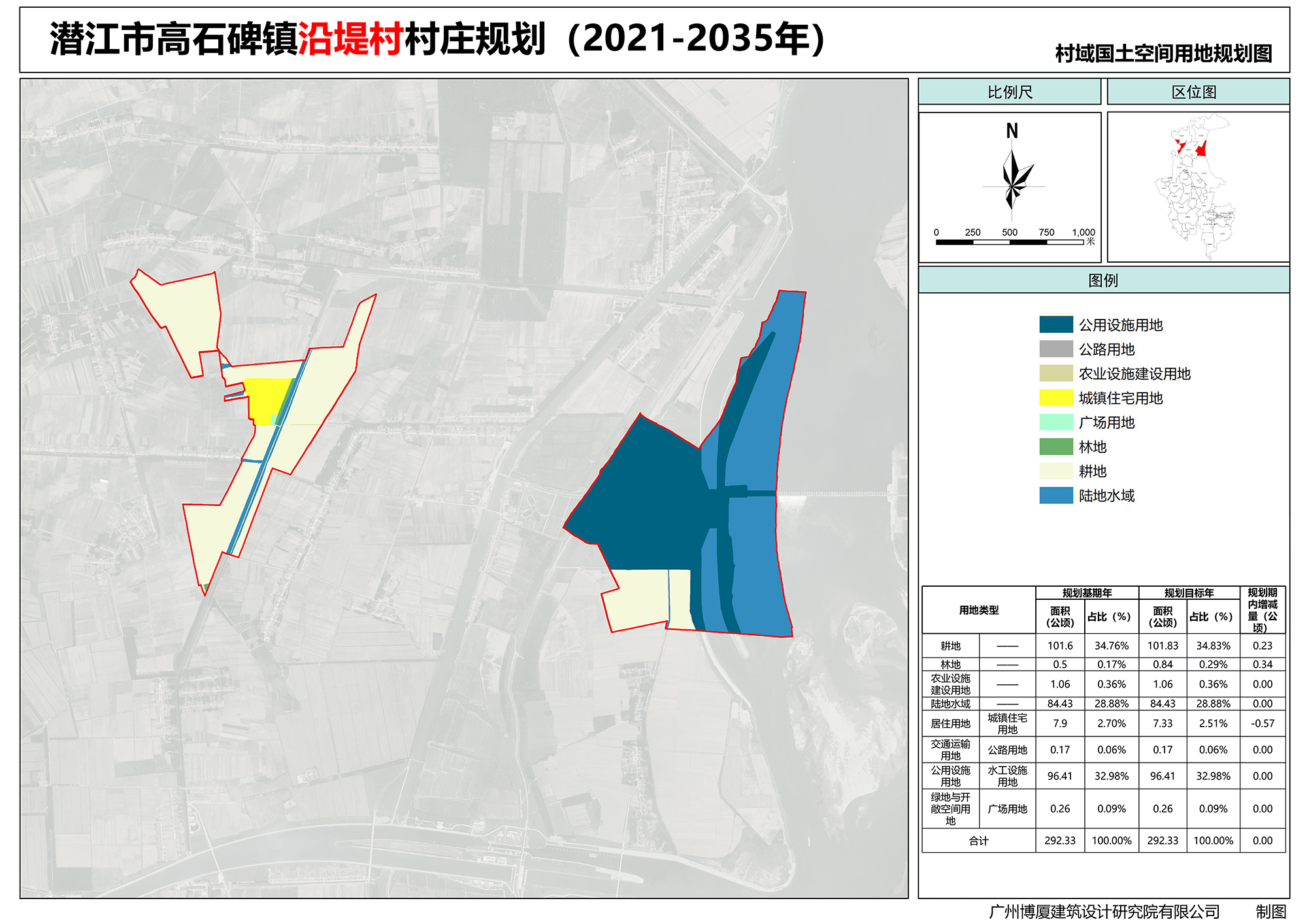 潜江市高石碑镇沿堤村村村庄规划(2021-2035年)村域国土空间用地规划图批后公布