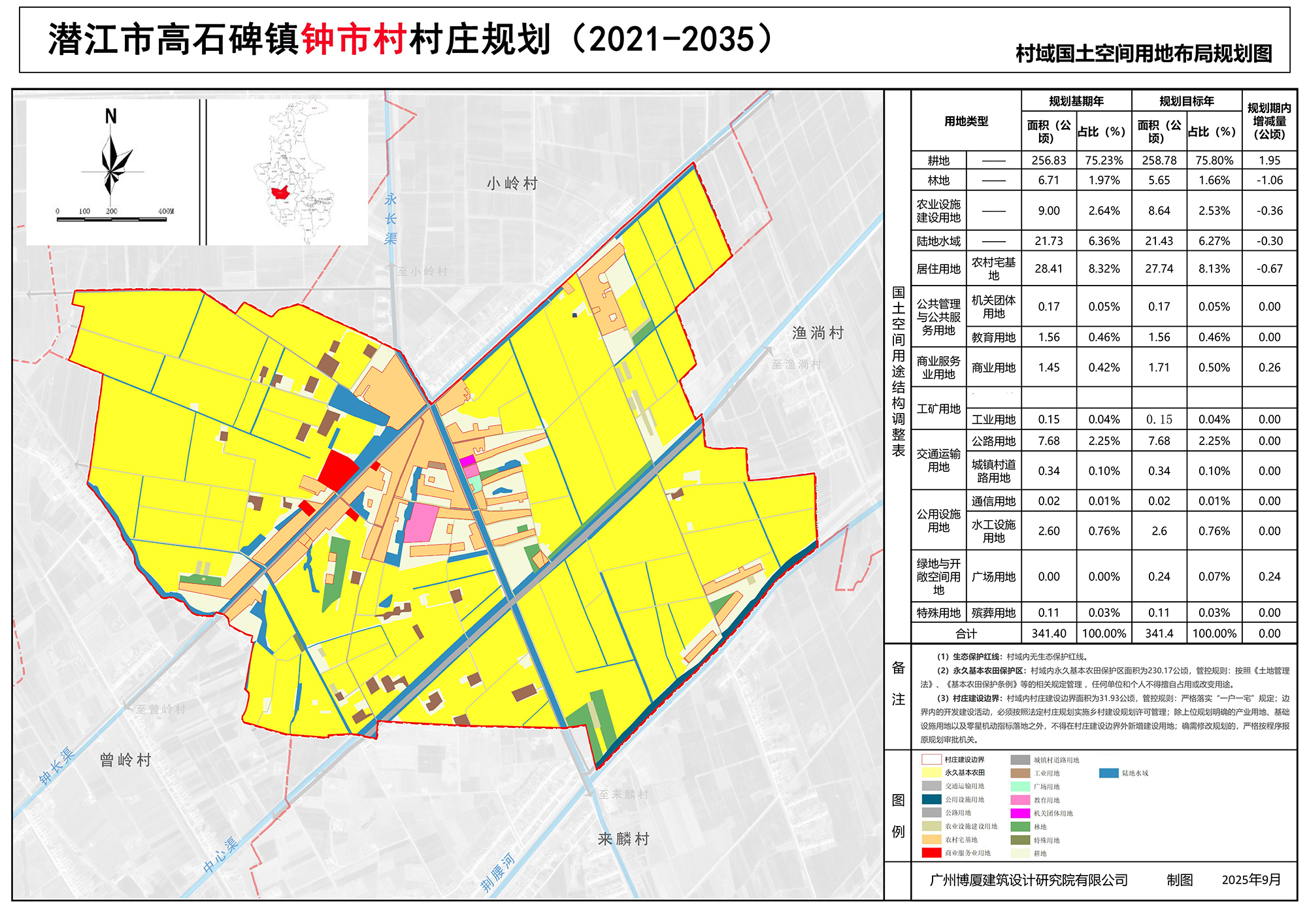 潜江市高石碑镇钟市村村庄规划(2021-2035年)村域国土空间用地规划图批后公布