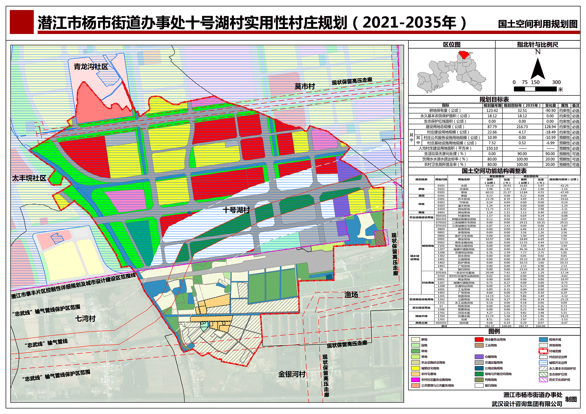 潜江市杨市街道办事处十号湖村村庄规划(2021-2035年)国土空间利用规划图批后公布